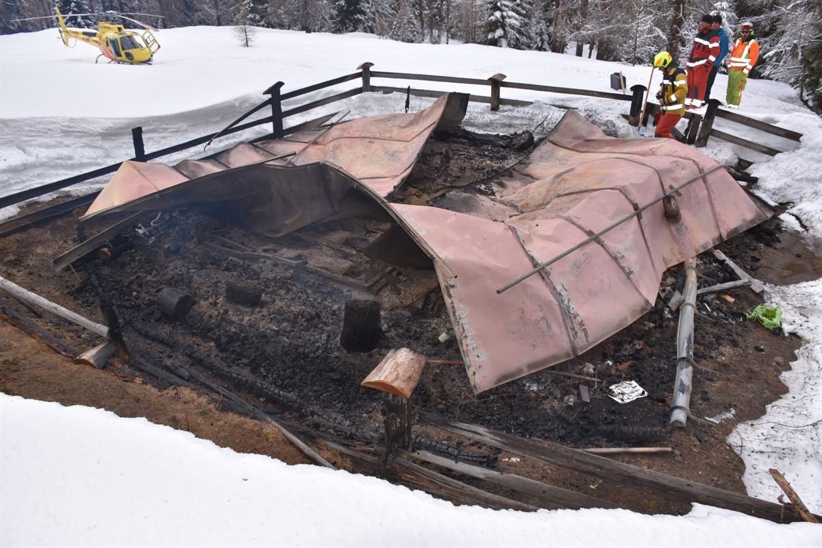 Kurz vor 21.00 Uhr meldete der Hausbewohner, dass in der Jagdhütte ein Brand ausgebrochen sei. Die Feuerwehr Pisoc rückte mit 20 Einsatzkräften aus, konnten jedoch aufgrund der Schneelage den Brandort nicht erreichen. Eine Rega-Crew und ein Mann der Alpinen Rettung barg den Meldeerstatter und flog ihn mit Verdacht auf Rauchgasvergiftung ins Spital Engiadina Bassa nach Scuol. Am Sonntag flog die Feuerwehr mit der Heli Bernina an den Schadenplatz. Die Hütte war vollständig abgebrannt, unter dem Blechdach war jedoch noch ein Mottbrand vorhanden, worauf mittels Helikopter Löschwasser abgelassen wurde. Die Kantonspolizei Graubünden klärt die Brandursache.