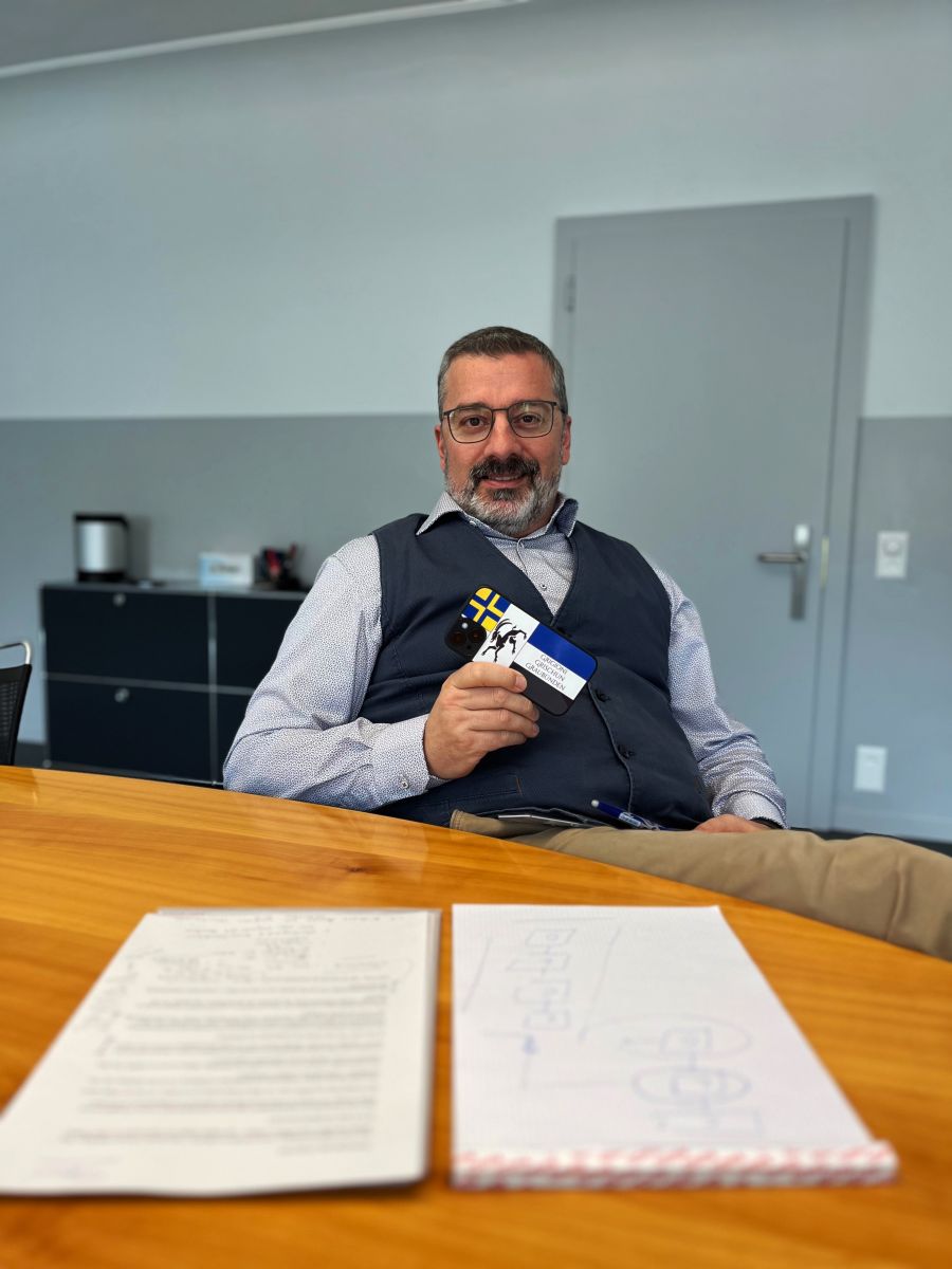 Daspö duos ons promouva Alberto Palaia il rumantsch e talian sco delegà dal Post specialisà pella plurilinguità dal Grischun. Ch’el viva la trilinguità grischuna as doda ed as vezza (fotografia: Toni Vinzens).