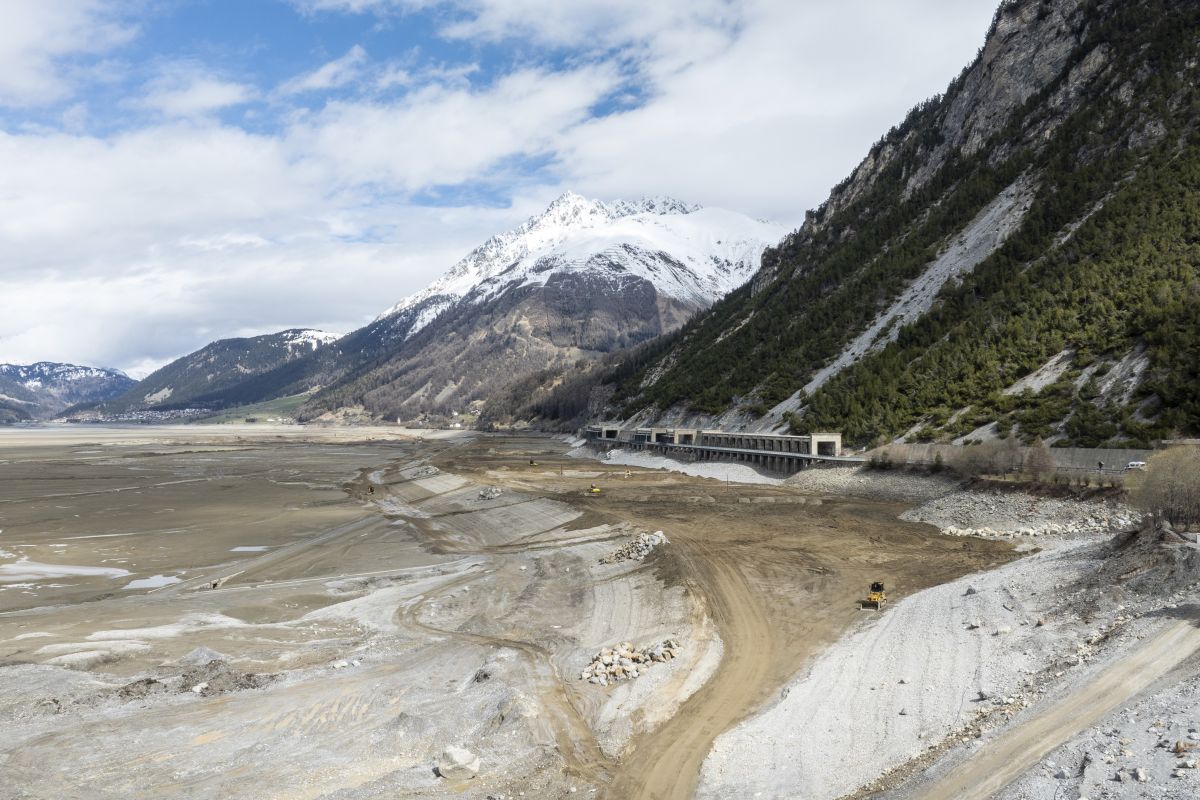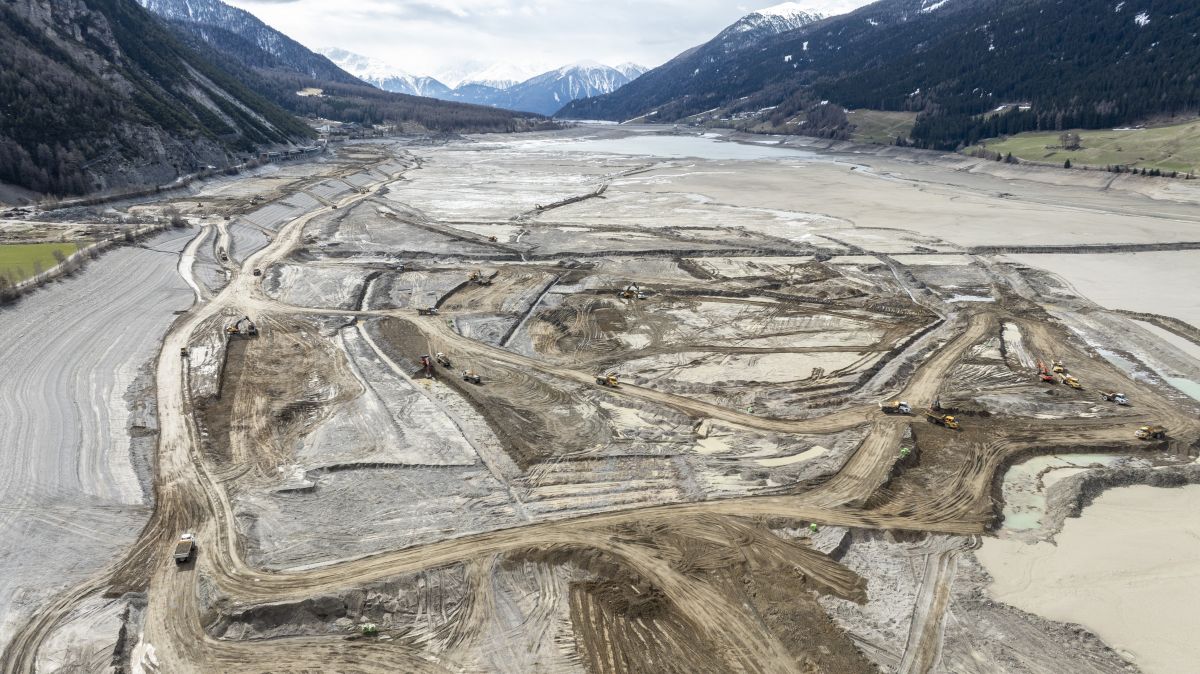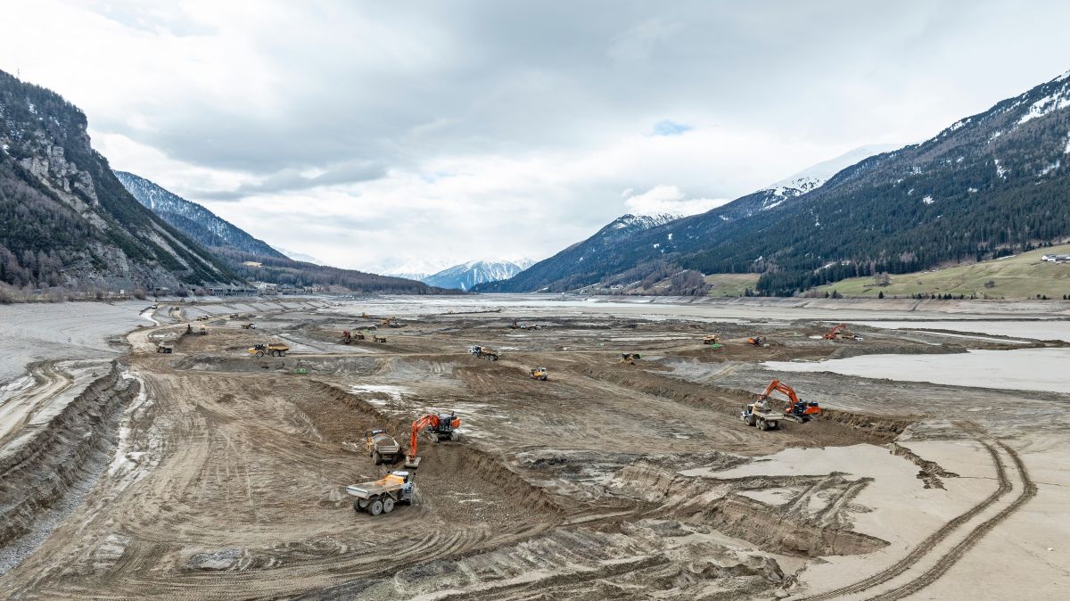 Der Reschensee ist aktuell trocken und gleicht einer riesigen Baustelle. Der Grund dafür ist ein grosses Infrastrukturprojekt. Zwischen Graun und St. Valentin musste die Strasse immer wieder aus Sicherheitsgründen gesperrt werden. Nun soll sie um 50 Meter in den See versetzt werden.