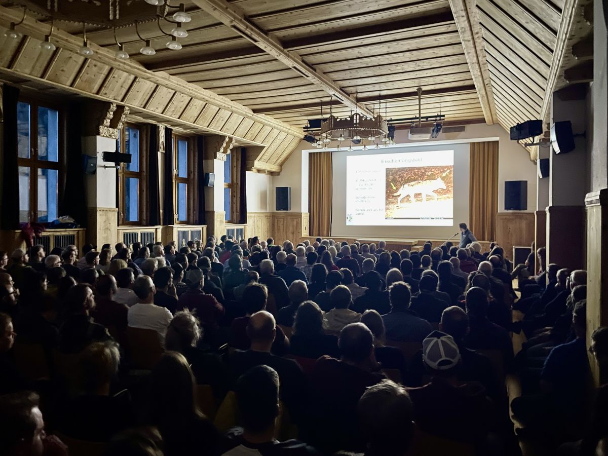 Voller Saal bei der öffentlichen Informationsveranstaltung zum Thema "Aktuelle Situation der Grossraubtiere im Unterengadin". Foto: Fadrina Hofmann