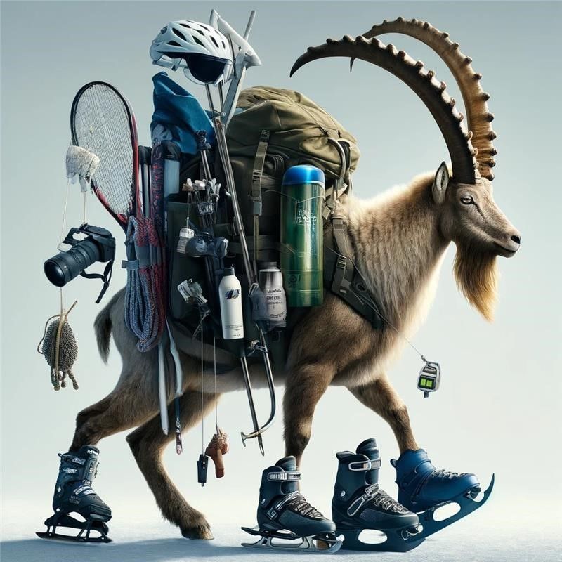 Zurecht fragen Sie sich, wie das Foto eines Steinbocks mit verschiedenen Sportutensilien entstanden ist... Die Antwort: Durch Künstliche Intelligenz. Die Redaktion von EP/PL befragt ihre Leserschaft alle zwei Wochen zu einem bestimmten Thema. Dieses Mal wollten wir wissen, welchen Sport Sie im Engadin am liebsten praktizieren.