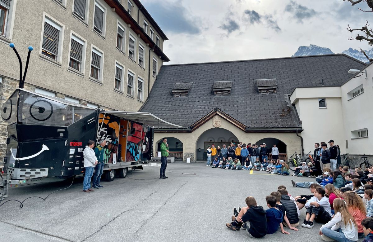 In marcurdi ha fat il SolarButterfly fermativa sülla plazza da scoula a Scuol. I‘s tratta dal plü grond veicul solar dal muond. L’iniziant Louis Palmer viagia dürant quatter ons cul SolarButterfly intuorn il muond. Da la partida sun tuot tenor etappa ulteriurs activists dal clima.
