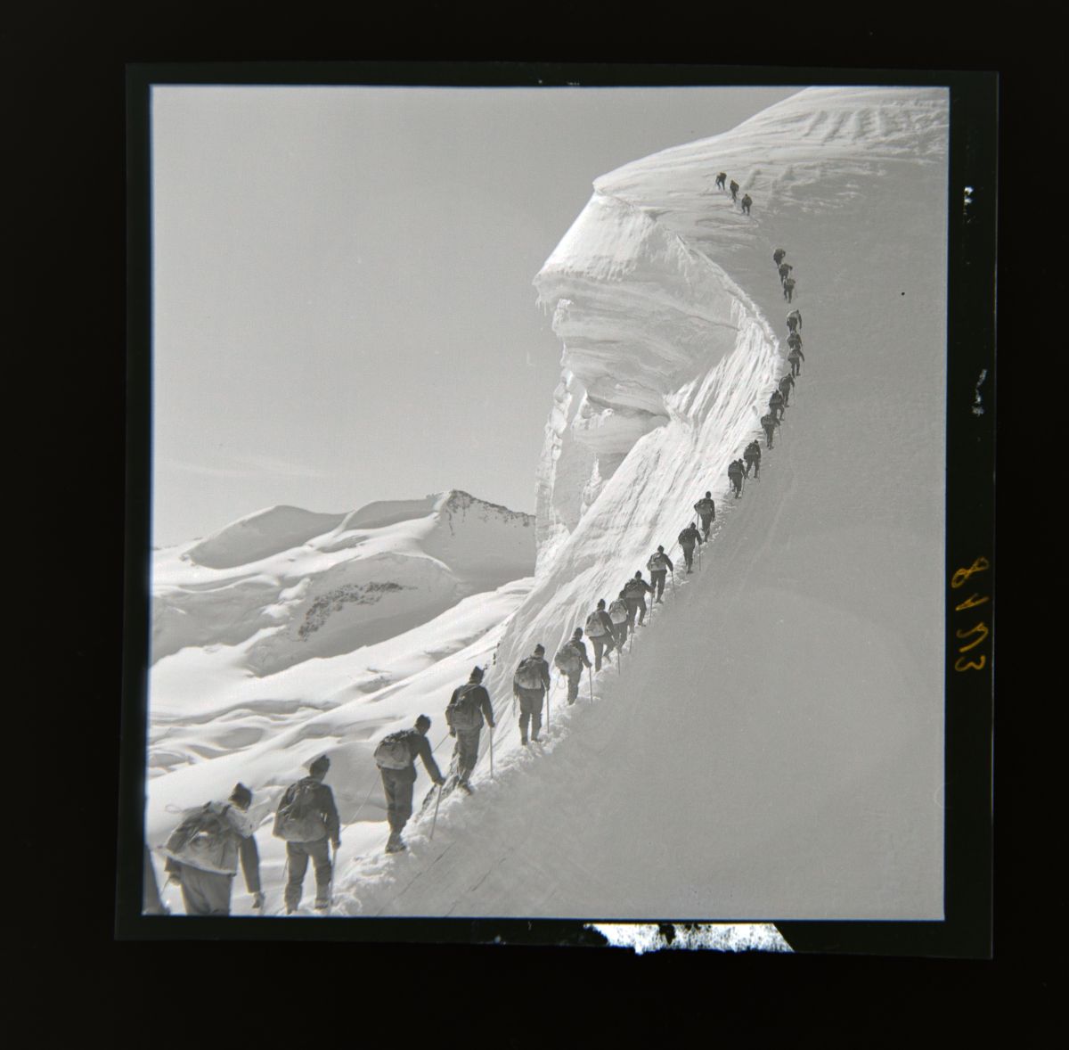 Spektakulärer Bergaufstieg der Soldaten. Foto: Gustav Sommer/Kulturarchiv Oberengadin