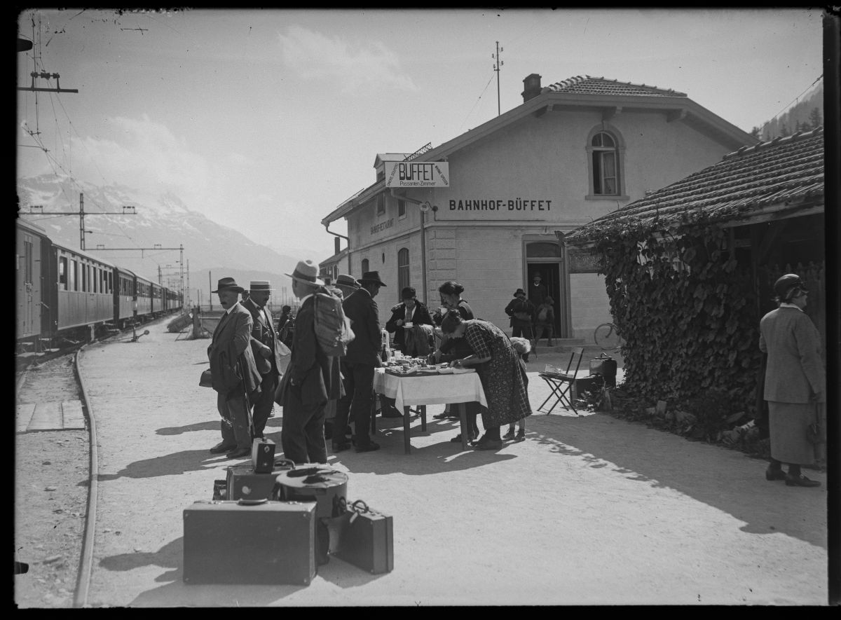 Am Bahnhof von Bever. Foto: Gustav Sommer/Kulturarchiv Oberengadin