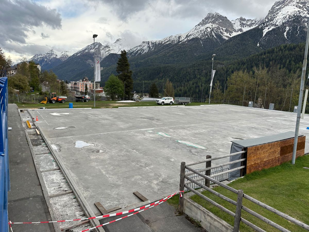 La sanaziun da la plazza da sport da Trü a Scuol pon cuntinuar. Il discapit da marcurdi resta sainza consequenzas (fotografia: Nicolo Bass).