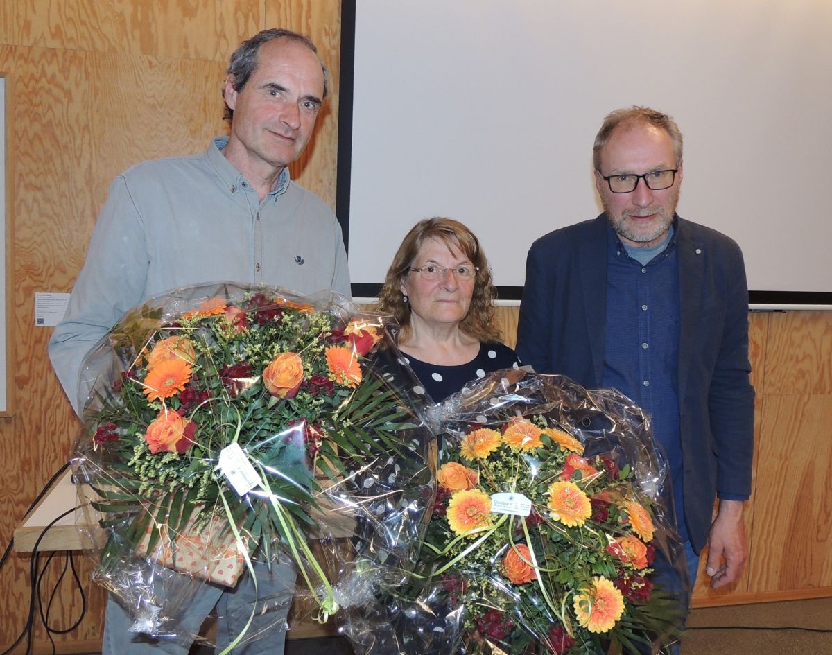 Vernissascha da l’exposiziun a Zernez: Yann Lenggenhager (da schnestra), president da la Fundaziun Robert F. Kennedy Human Rights Svizra, la referenta Maria Ursula Waser e Peter Tiehle, il manader da la scoula da Zernez (fotografia: Benedict Stecher).