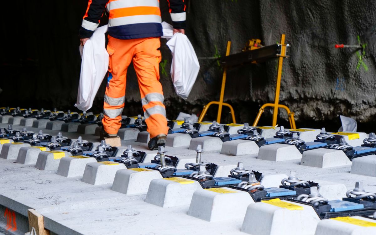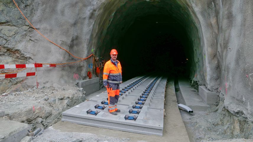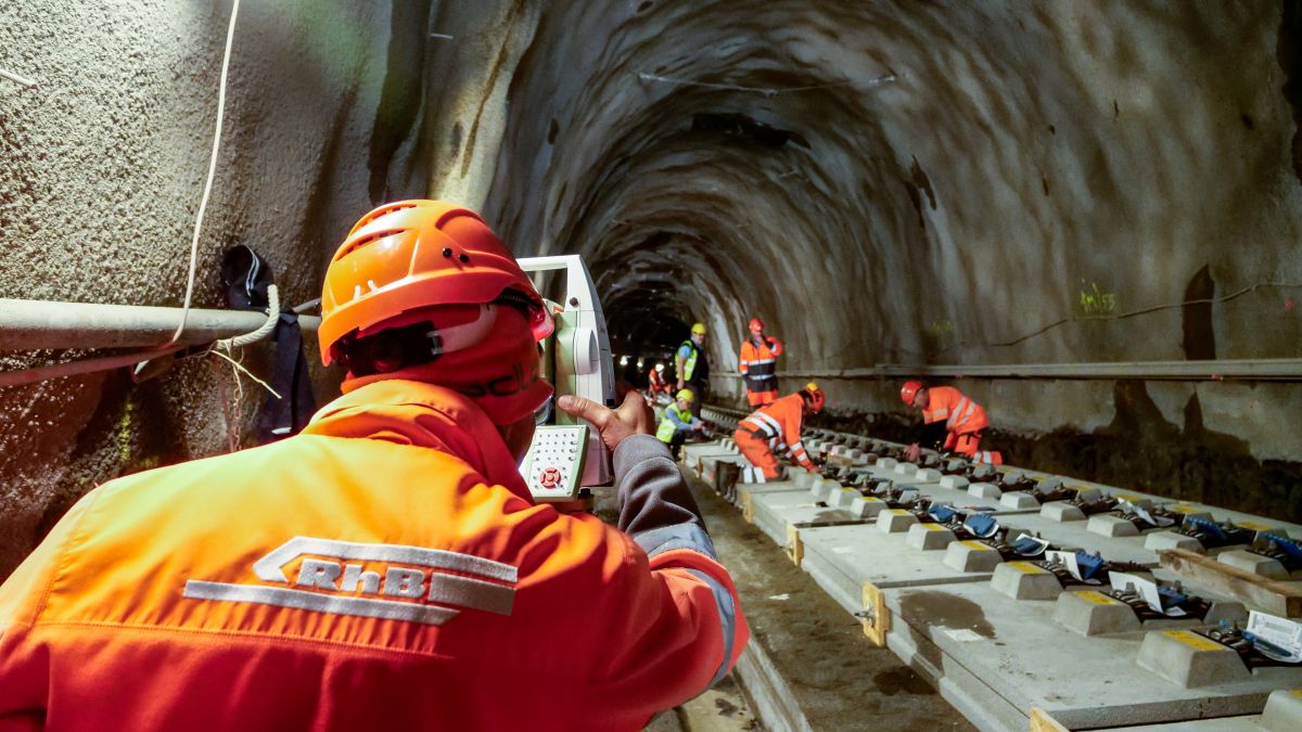 Bahngeleise auf vorfabrizierten Betonelementen statt auf Schotter. Was bisher erst an Hochgeschwindigkeitsstrecken in Österreich eingesetzt wurde, kommt nun in einer von der RhB entwickelten Form auch in den Brailtunnels I und II zur Anwendung. Das System spart viel Zeit und ergo, auch Kosten.