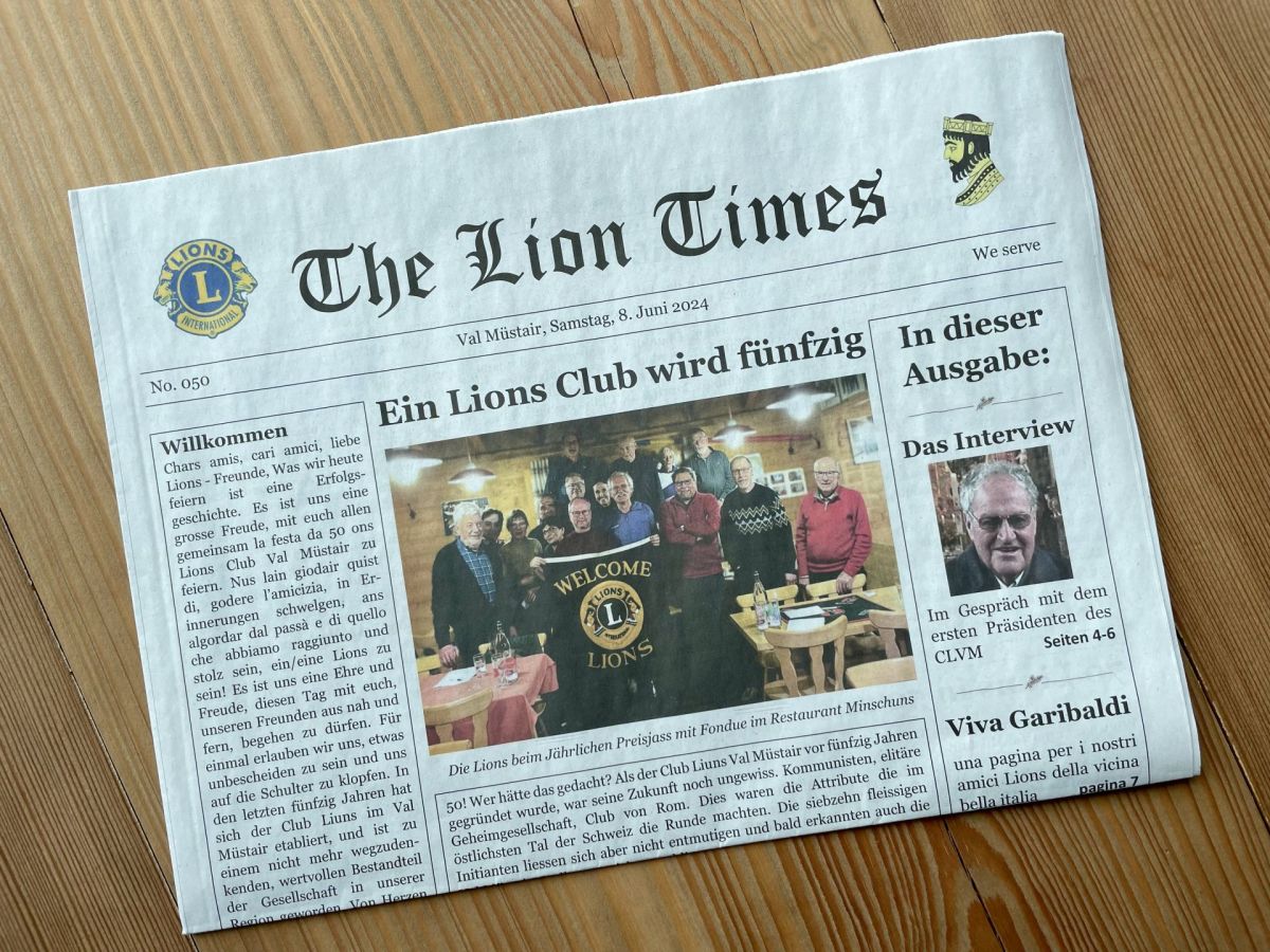 Pel giubileum ha il Club da Liuns Val Müstair edi la «Lion Times» – üna gazetta pels prüms 50 ons dal club (fotografia: mad).