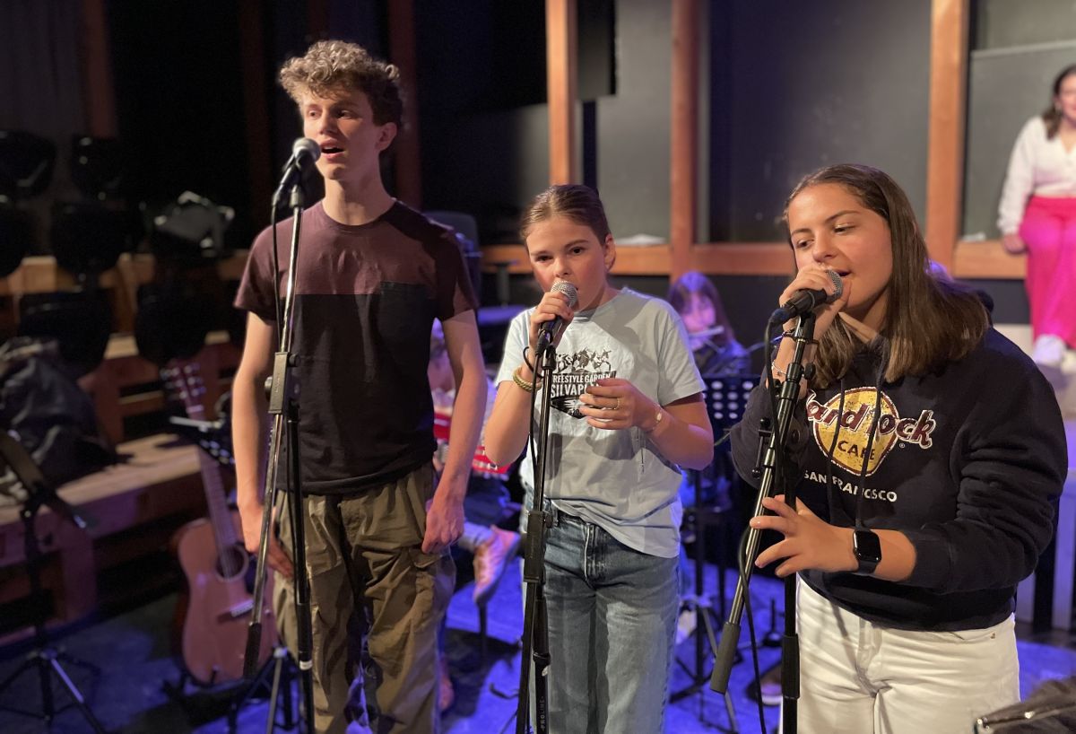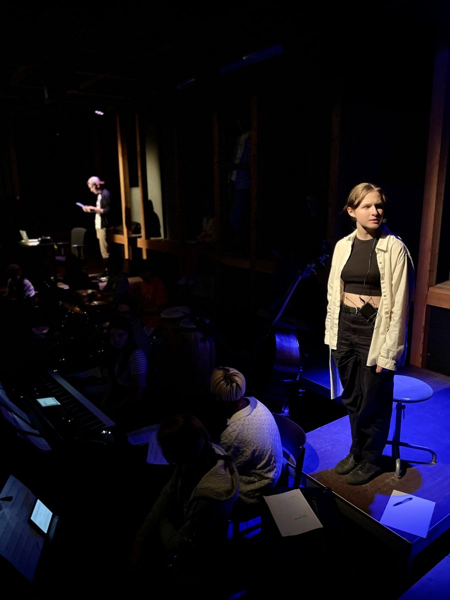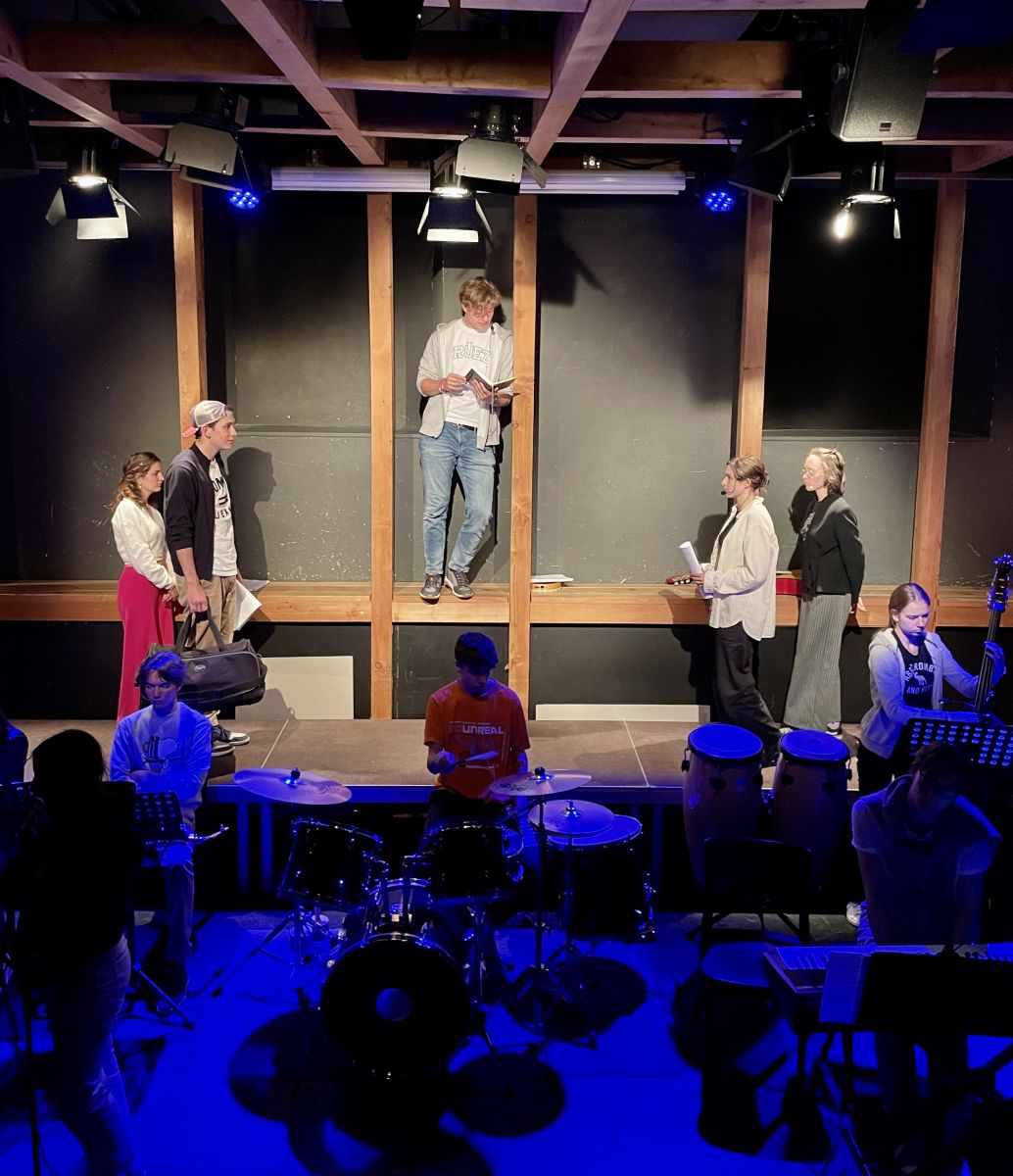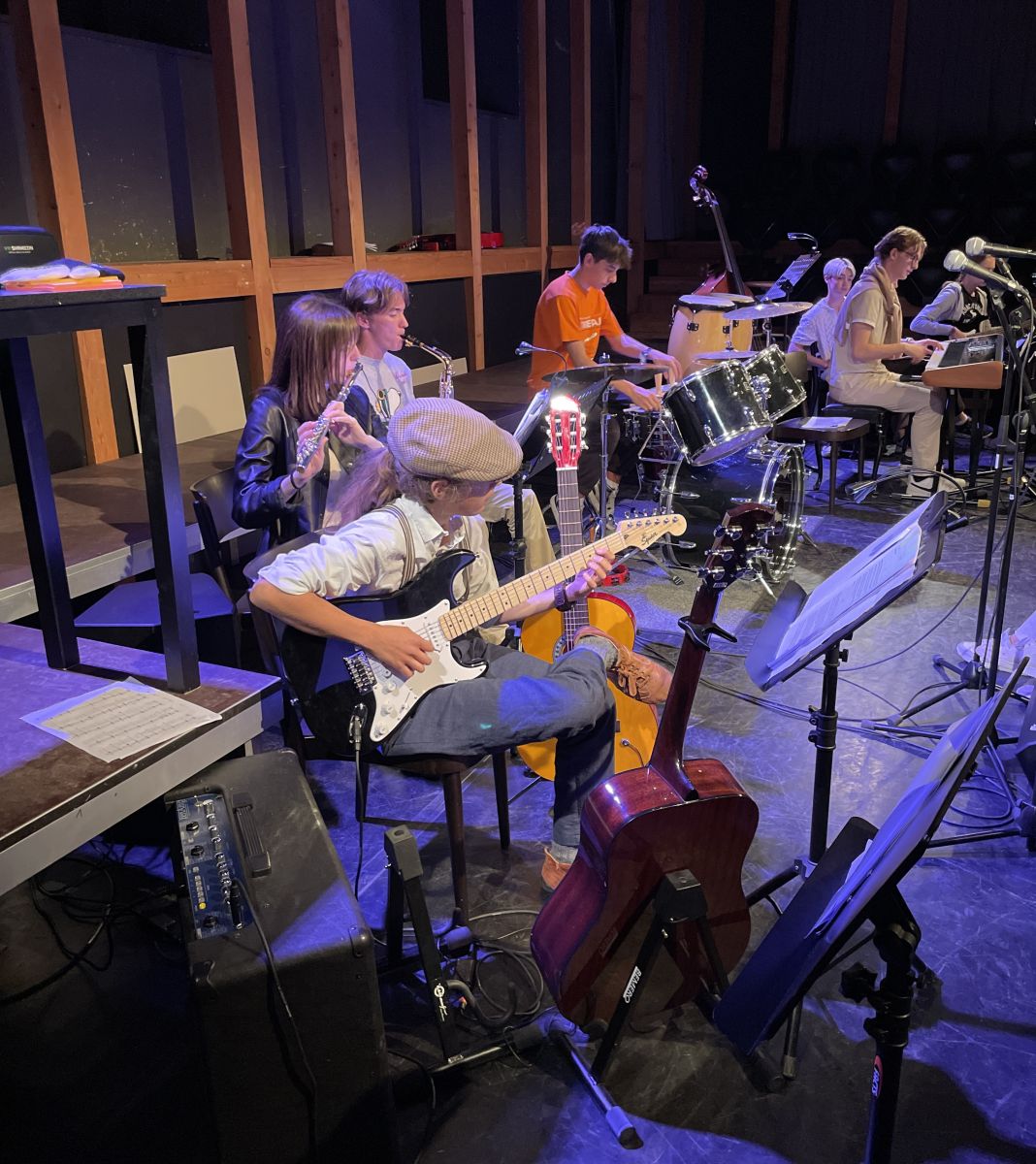 Die Schulband begleitet die Geschichte auf der Bühne. Foto: Fadrina Hofmann