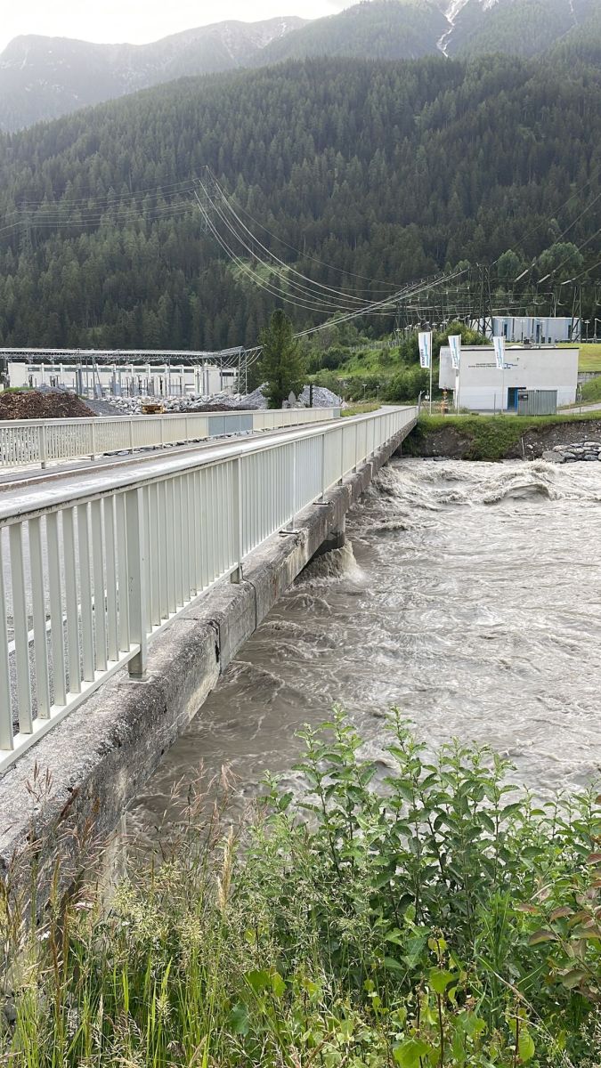 Der Wasserpegel beim Kraftwerk Pradella am Freitag gegen 19 Uhr. Foto: Michaela Vitalini