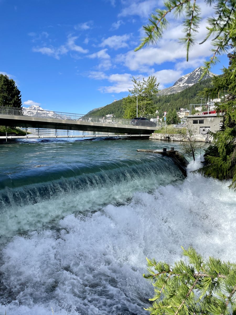 Die Wassermassen von St. Moritzersee am Samstagmorgen. Foto: Fadrina Hofmann