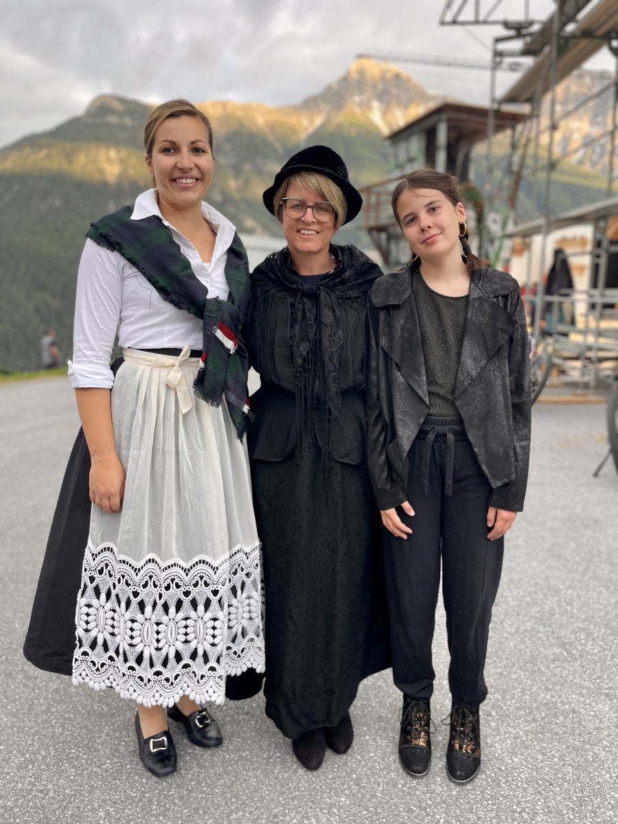 Andrina Thom, Sabina Stricker e Noemi Müller s'allegran sülla premiera. fotografia: Fadrina Hofmann