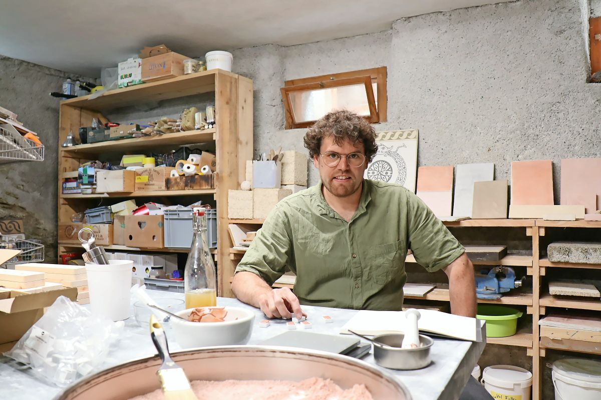 Il «alchemist dals pigmaints» Joannes Wetzel cun tuot las üsaglias per il pass final – il maisdar da las culuors (fotografia: Martin Camichel).