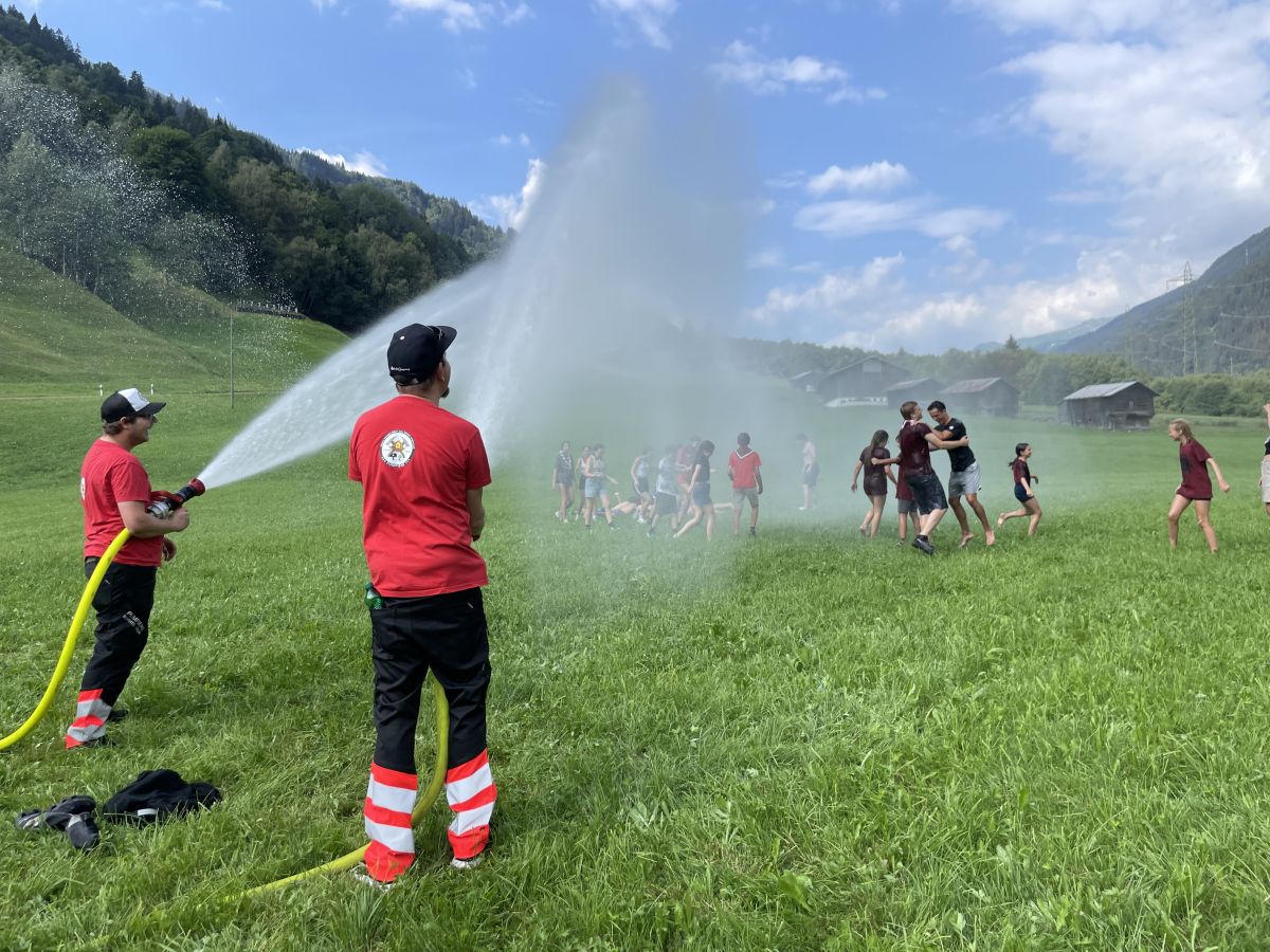 Heiss ist es an diesem Vormittag. Nicht nur sommerlich warm, nein, richtig brütend heiss. Als die lokale Feuerwehr die Wasserspritzen in Funktion setzt, geht es keine Minute, und die ersten Kinder und Jugendlichen springen jauchzend und lachend unter den Wasserstrahl. Schmunzelnd bleiben die Erwachsenen stehen und so manch einer hätte es den ausgelassenen Kids gerne nachgemacht.