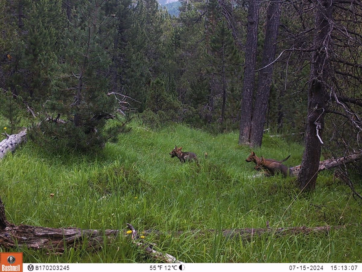 Im Laufe des Frühsommers fanden Mitarbeitende des SNP zahlreiche Kadaver von Huftieren, die vollständig genutzt worden waren. Dies deutete wiederum auf die Präsenz eines Wolfsrudels hin. Letzte Woche ist es nun einem Parkwächter gelungen, im Raum Il Fuorn 2 Jungwölfe direkt zu beobachten. Eine Fotofalle in der Nähe brachte den endgültigen Nachweis: Auch 2024 hat das Wolfspaar Il Fuorn mindestens 3 Welpen. Ob es noch mehr Jungwölfe sind, werden die nächsten Wochen und die bereits seit dem Frühsommer installierten Foto- und Videofallen zeigen. Ein weiteres Ziel ist es, das Geschlecht der Tiere mittels genetischer Analyse zu bestimmen.