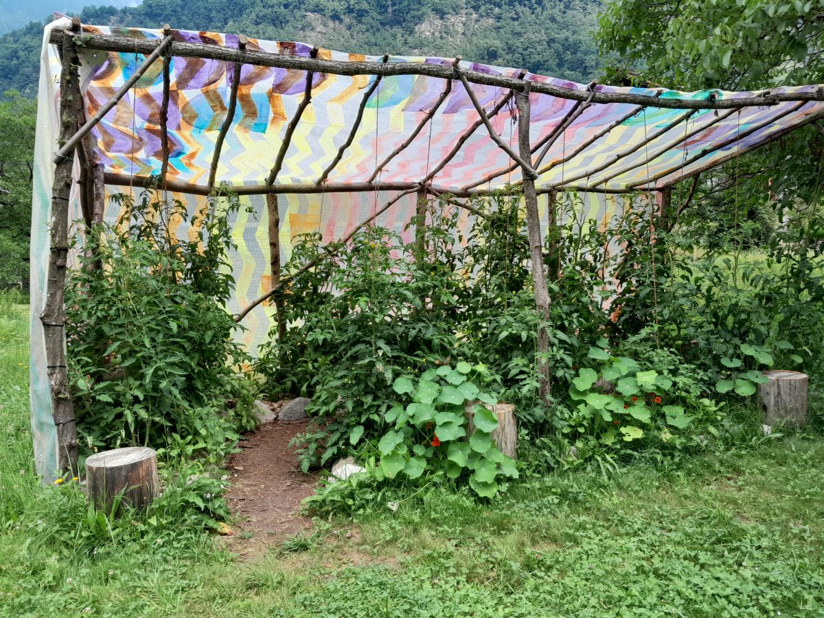 Als Austragungsort der Biennale Bregaglia bildet Bondo mit seinen Häusern, Gassen, Gärten und Mauern zum Schutz von Gesteinsströmen den Rahmen für die feinsinnige Ausstellung mit zehn Kunstwerken. Die Führung mit Pia Stettler behandelte die Zusammenhänge des Gesamtthemas «Architektur und Gärten».