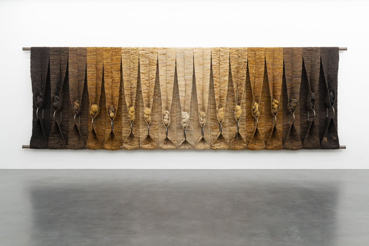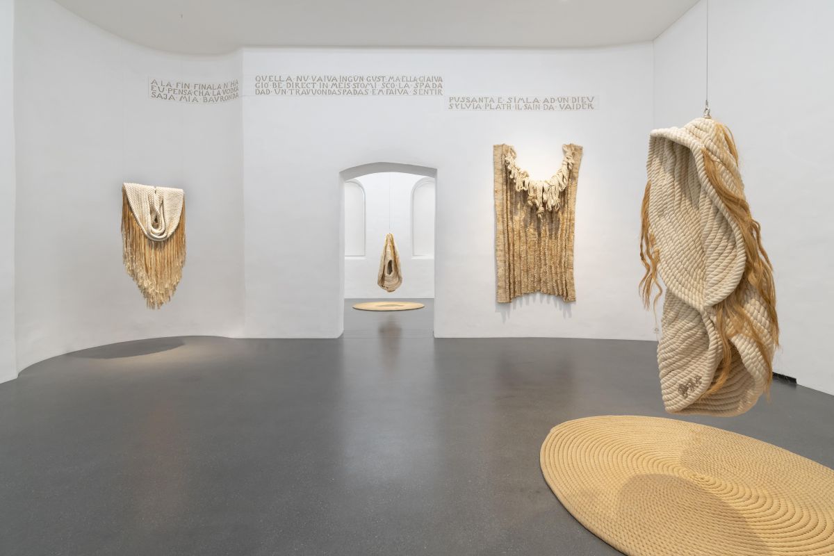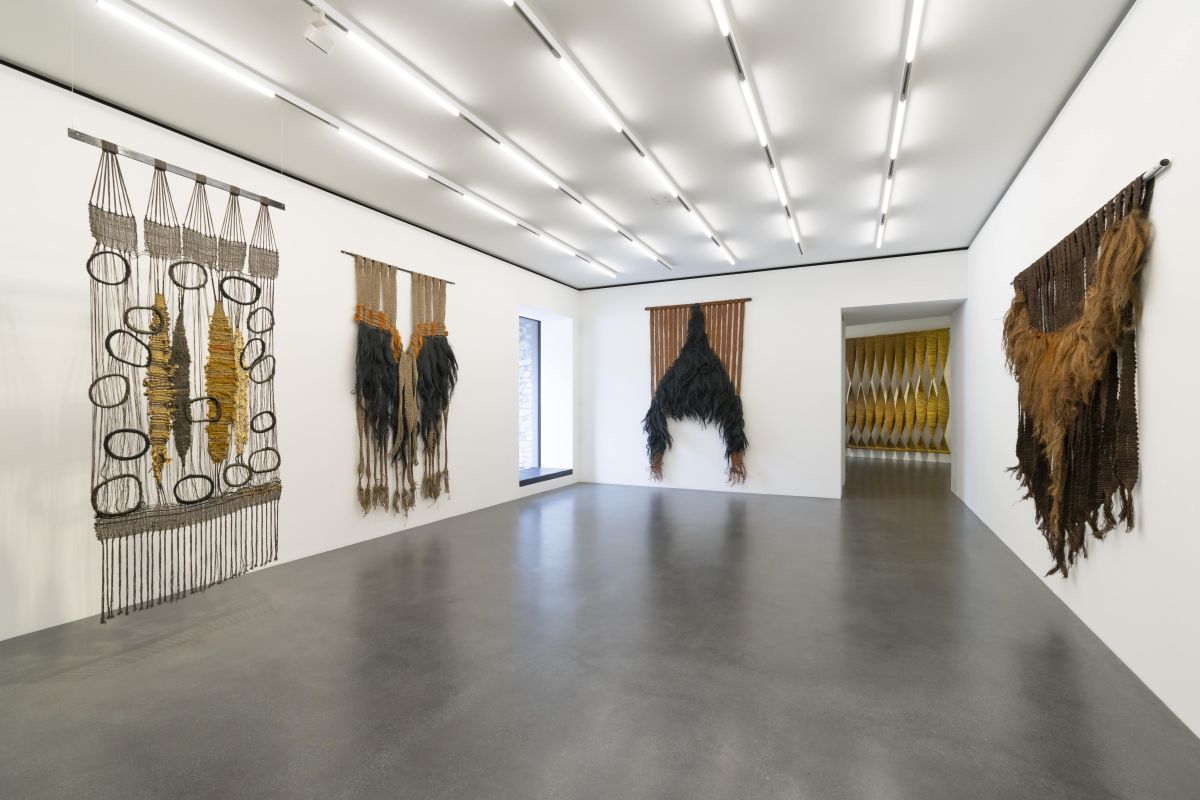 Werke im ersten Obergeschoss, die auf den Übergang von der Weberei zu skulpturalen Arbeiten verweisen. Foto: Federico Sette