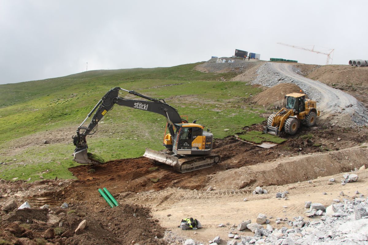 Auf der Grossbaustelle des zweiten Naturspeichersees, Lej Nair Pitschen, herrscht aktuell emsiges Treiben.
