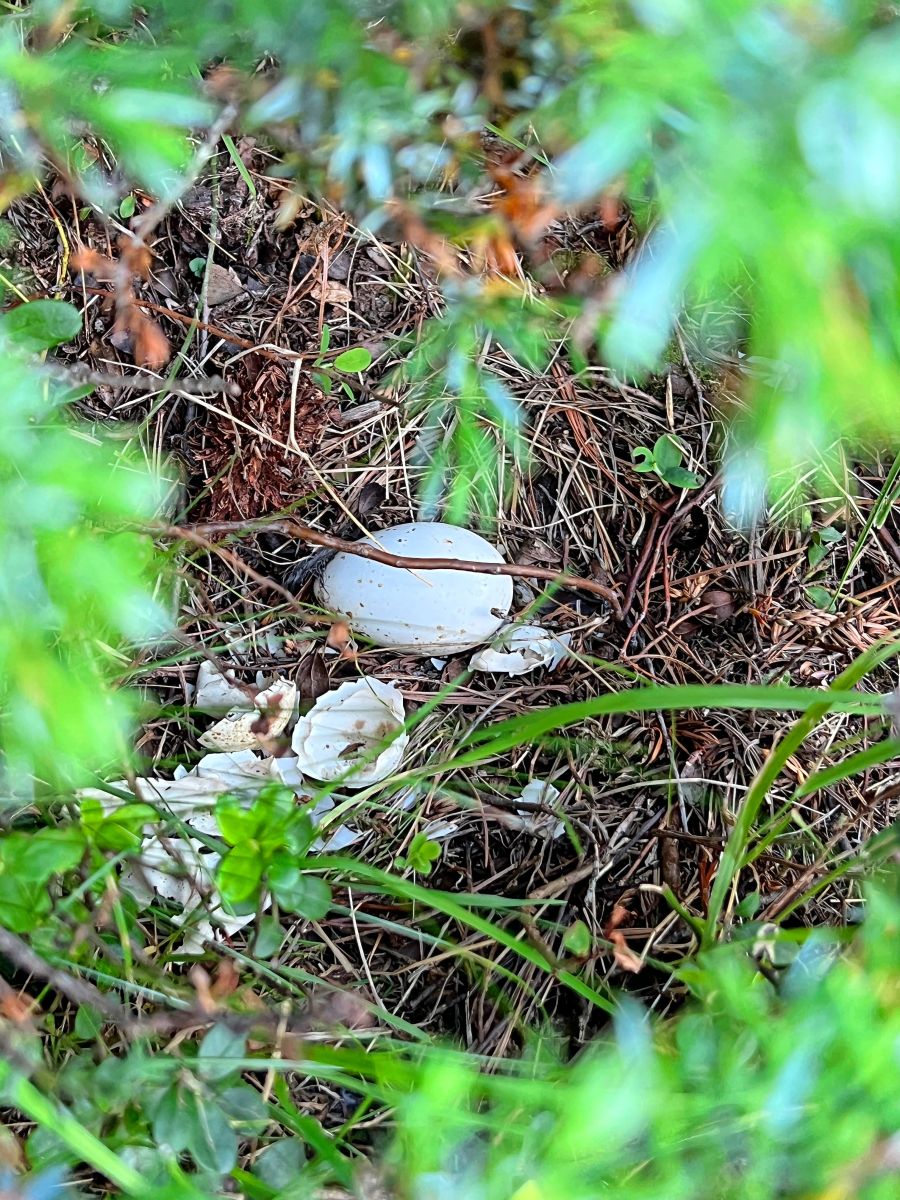 Sechs Birkhuhn-Eier hat Naturfotograf Levi Fitze inmitten von Wacholderbüschen entdeckt. Foto: Stefanie Wick Widmer