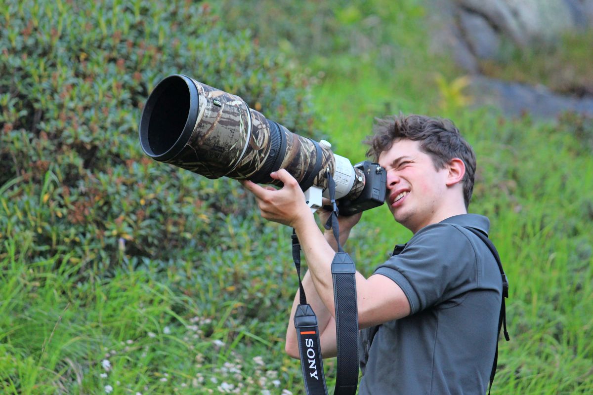 Der Naturfotograf Levi Fitze während seiner Arbeit im Engadin. Foto: Stefanie Wick Widmer