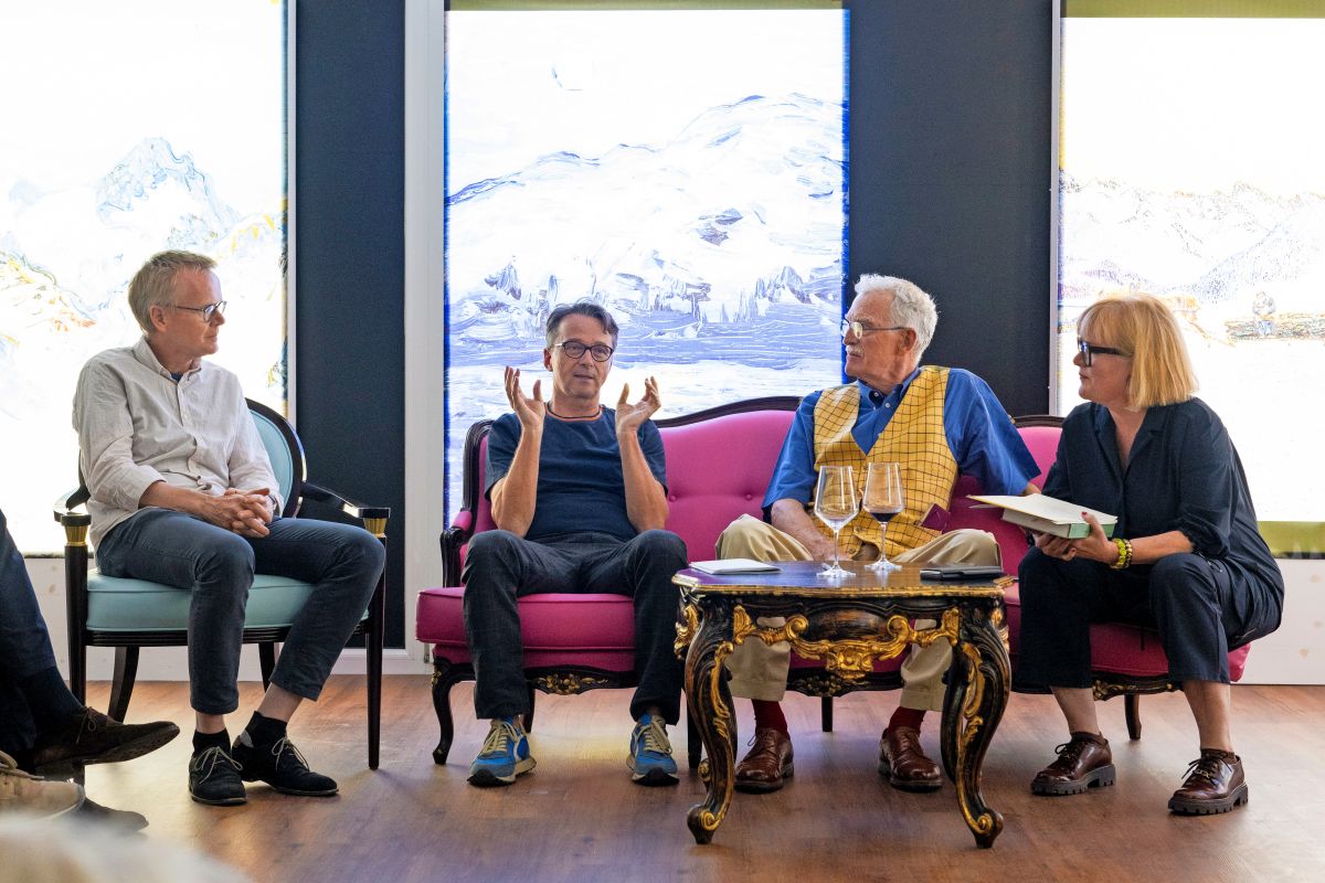 Verleger Bruno Meier, Autor Adrian Stokar, Peter Robert Berry IV und Cornelia Schwab im Gespräch. Foto: Mayk Wendt