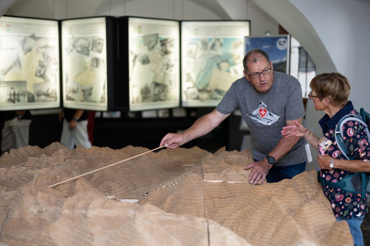 Hans Conradin declera ils staziunamaints militars dürant la Prüma Guerra mundiala (fotografia: Dominik Täuber).