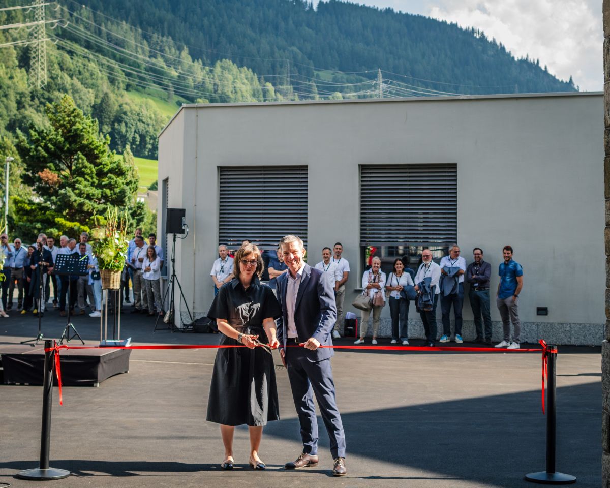 Roland Leuenberger, Geschäftsführer der Repower, und Regierungsrätin Carmelia Maissen haben am Tag der offenen Türen das Kraftwerk feierlich