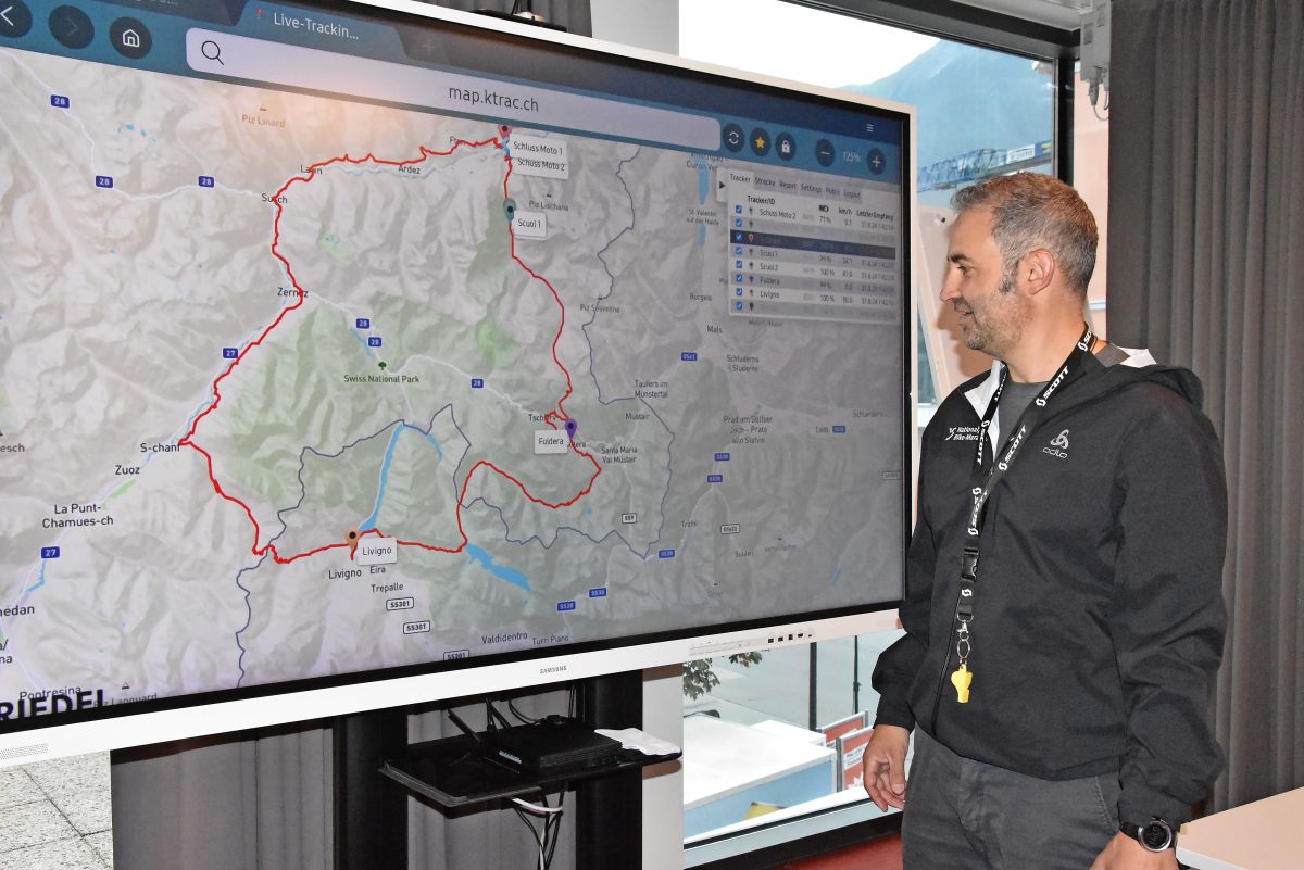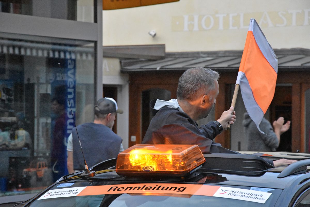 Nach 15 Jahren gibt Flurin Bezzola seine Ämter als Co-Präsident und Rennleiter des Nationalpark Bike-Marathons ab. Die Rennleitung übernimmt in Zukunft Mario Riatsch. Die EP/PL hat Flurin Bezzola und seinen «Lehrling» Mario Riatsch am Renntag begleitet.
