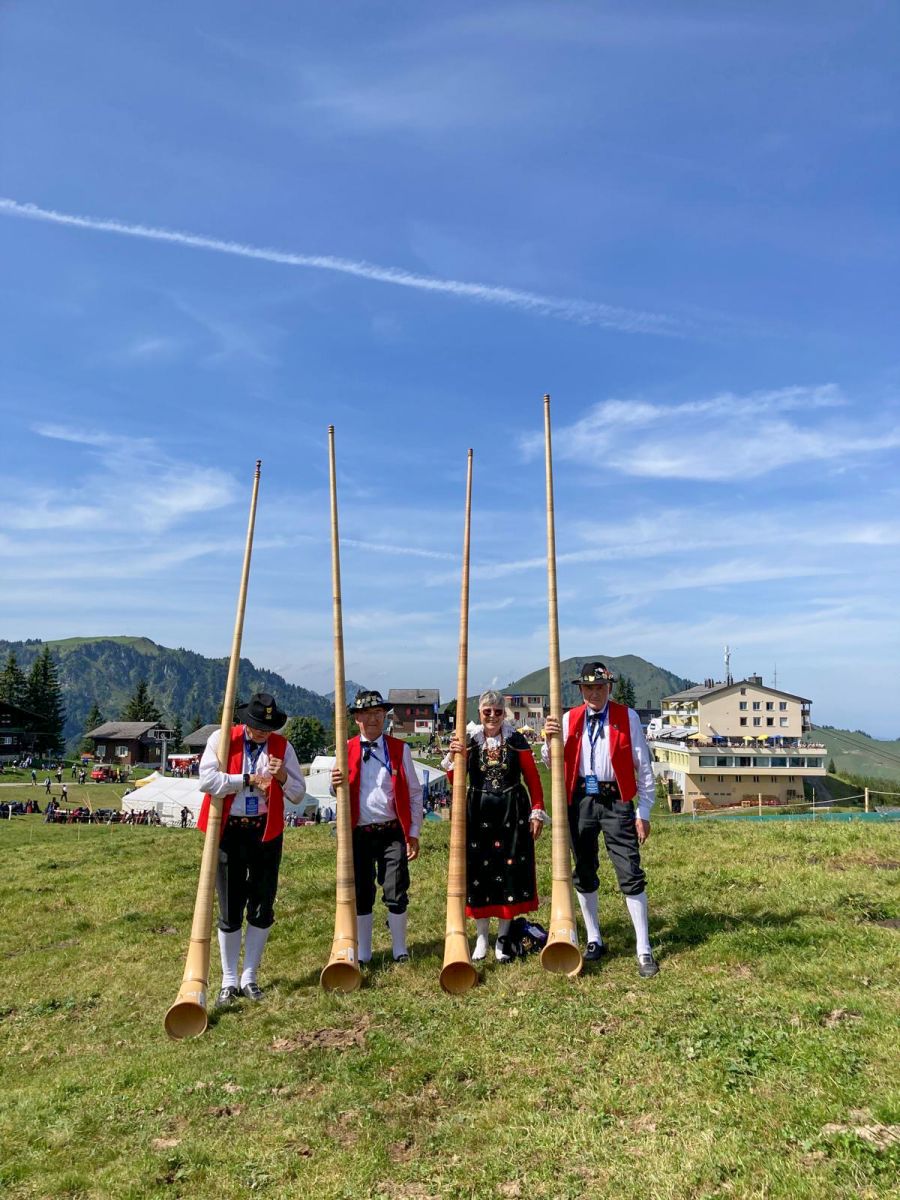 Das Alphorn-Ensemble Engiadina St. Moritz nach getaner Arbeit.