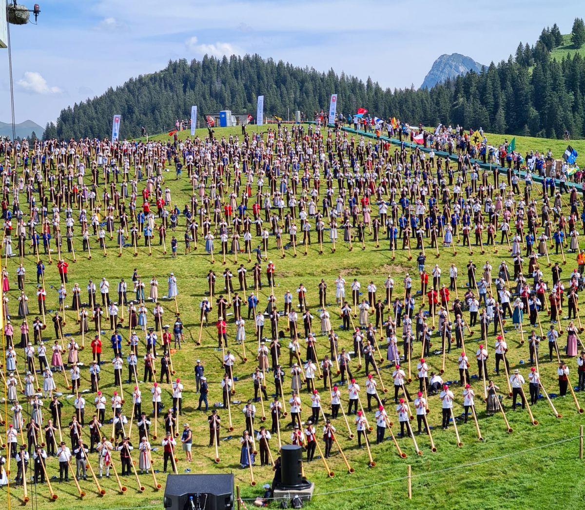 Am Samstag intonierten 1006 Alphornbläserinnen und -bläser auf der Nidwaldner Klewenalp gemeinsam das Stück «Uf de Bänklialp». Damit schufen sie einen neuen Weltrekord. Mit dabei das Alphorn Ensemble Engiadina St. Moritz und «Ils Infernals» aus der Val Müstair.