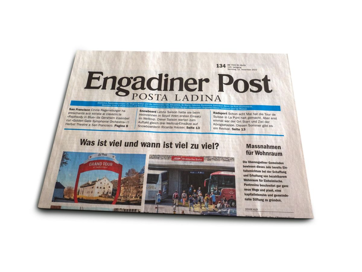 Ein Grossteil der Abonnenten des Oberengadins hat am Samstag, 14.9. die «EP/PL nicht erhalten. Gemäss der Post ist der Lastwagen vom Wetterumschwung überrascht worden und auf dem Julierpass stecken geblieben. Wir bedauern das sehr. Die Post hat die Samstags-Ausgabe am Montag 16.9. verteilt.