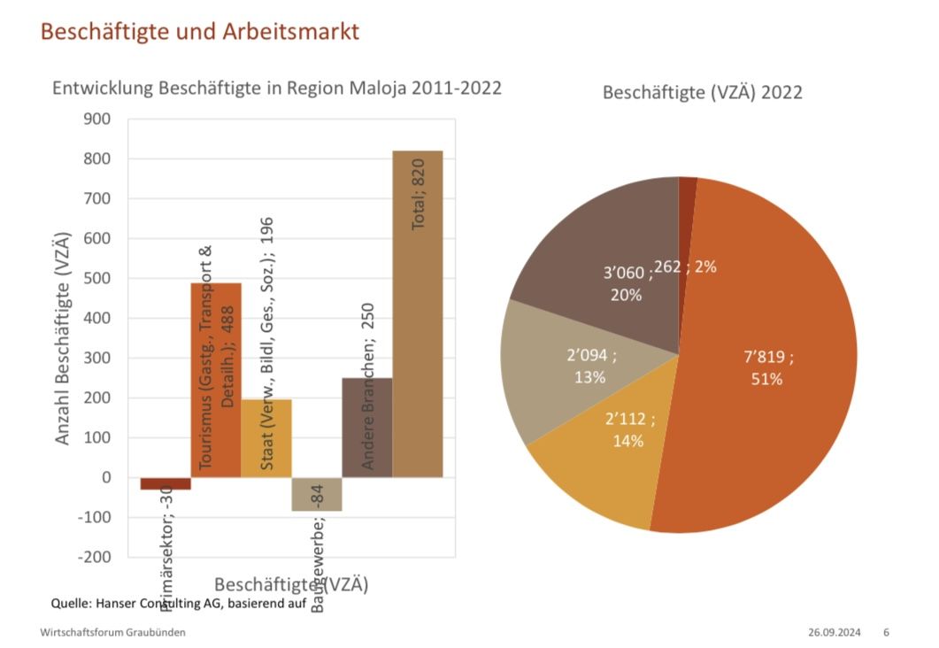 Kuchendiagramme, Grafiken und Listen hatte Peder Plaz, Geschäftsführer des Wirtschaftsforums Graubünden, am Donnerstag für die Präsentation im Ratssaal des Alten Schulhauses St. Moritz mitgebracht. «Wohnungsknappheit, Pendler & ...