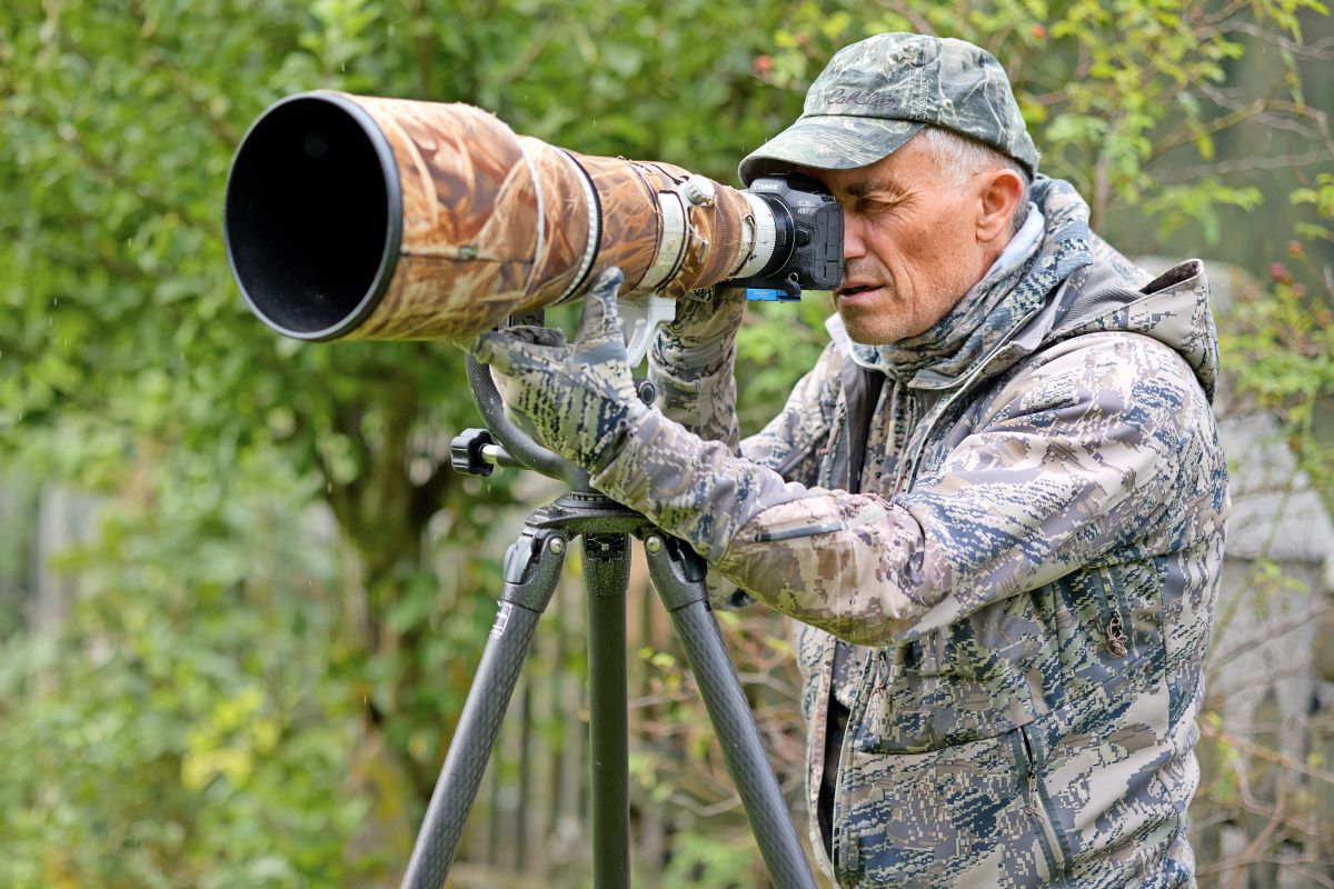 «Cur chi’d es i a fin culla chatscha n’haja cumanzà a fotografar»: Cesare Mauri in vesti da camufladi.