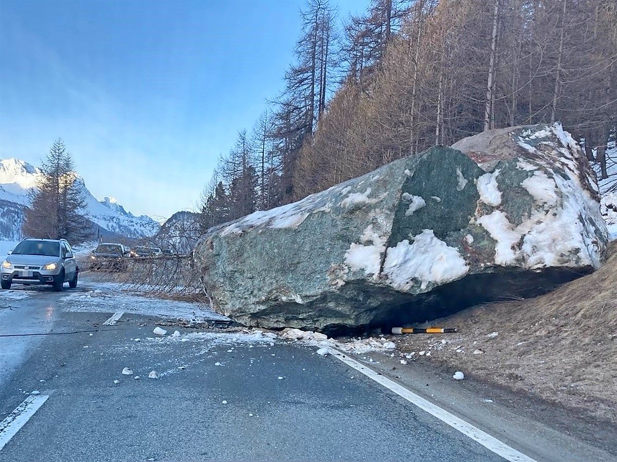 Naturereignisse mit grösseren Folgen nehmen zu. Seit Jahren bekannt ist die Felssturz-Problematik auf der Kantonsstrasse zwischen Sils und Plaun da Lej. Foto: Kantonspolizei Graubünden