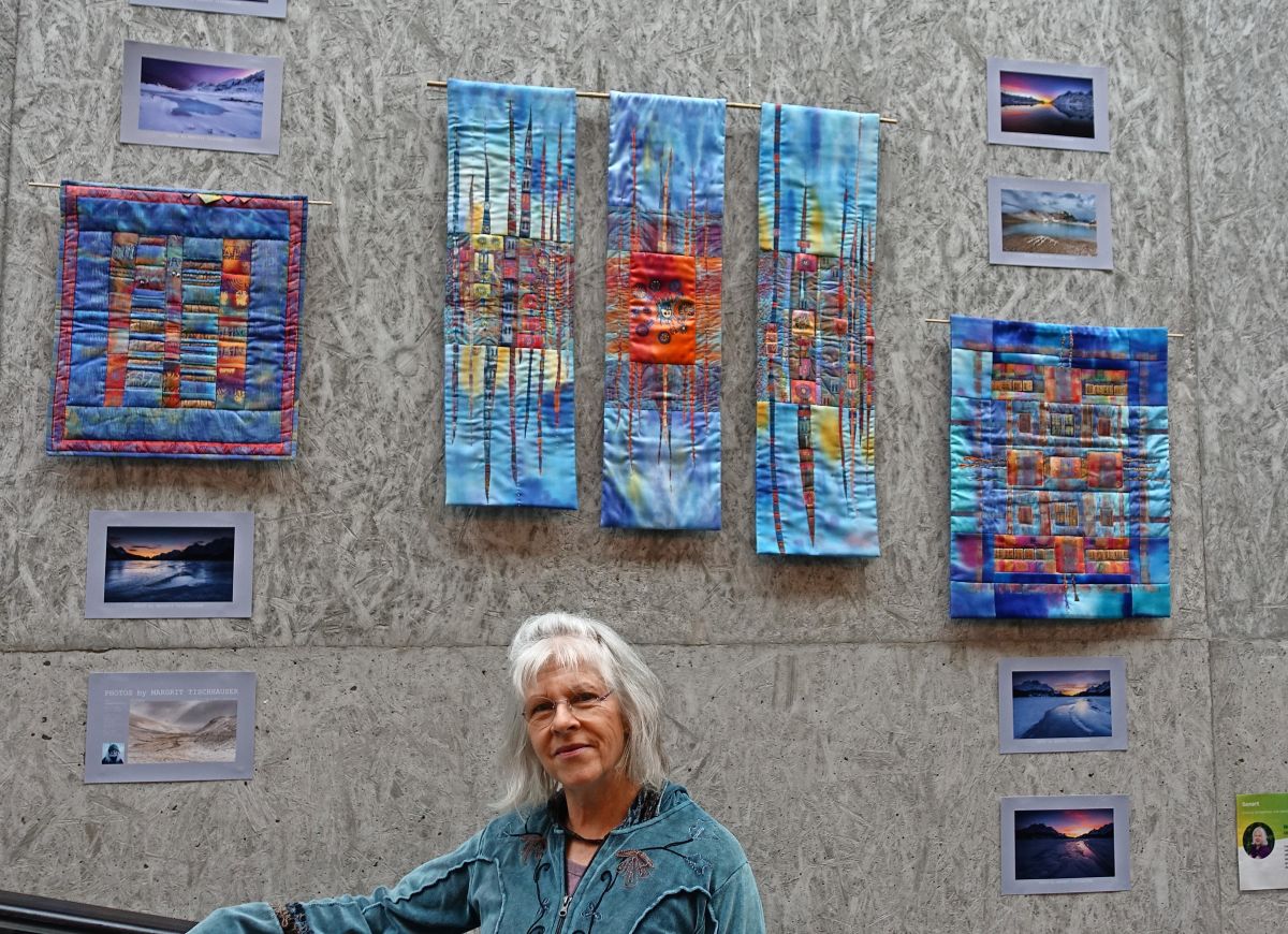Aussergewöhnliche Techniken an der SenArt: von Cyanotypie (altes fotografisches Edeldruckverfahren) über Patchwork mit gefärbter Seide (Margrit Tischhauser) bis geklöppelte Kunstwerke