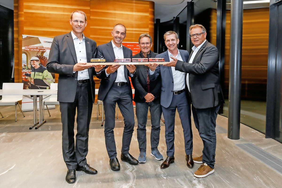 Von links: RhB-Direktor Renato Fasciati, Dario Castagnoli, Urs Tarnutzer, Roland Leuenberger, Christian Florin Foto: z.Vfg