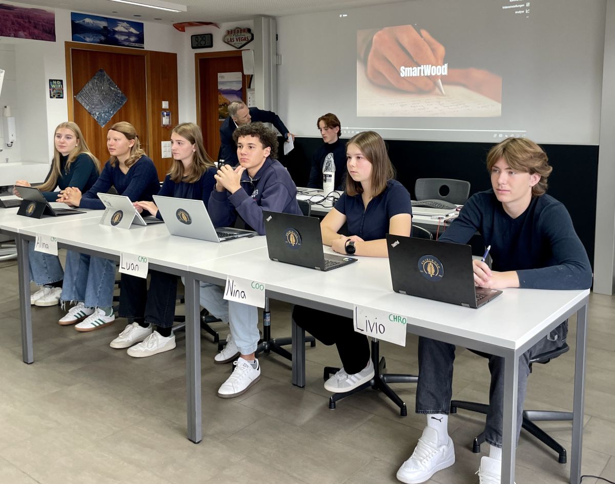 Wer den Ausführungen der Smartwood-Geschäftsleitung gelauscht hat, vergisst beinahe, dass die Firma fiktiv ist und 16- und 17-jährige Jugendliche hinter den Laptops sitzen. Es handelt sich um eine Simulation im Rahmen der Wirtschaftswoche. «Das Ziel der Wirtschaftswoche ist, dass die Schülerinnen und Schüler die Realität der Wirtschaftswelt kennenlernen, erklärt Rektor Fadri Guidon, der ebenfalls an der Investorenkonferenz teilnimmt.»
