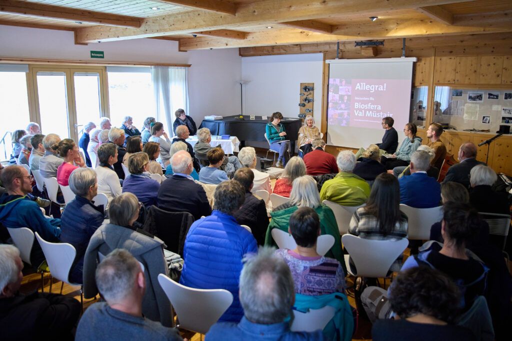 La «Chasa Jaura» a Valchava d’eira stachi plaina per la vernissascha dal cudesch «Allegra! inscunters illa Biosfera Val Müstair». Foto: Michael Steiner/fmr