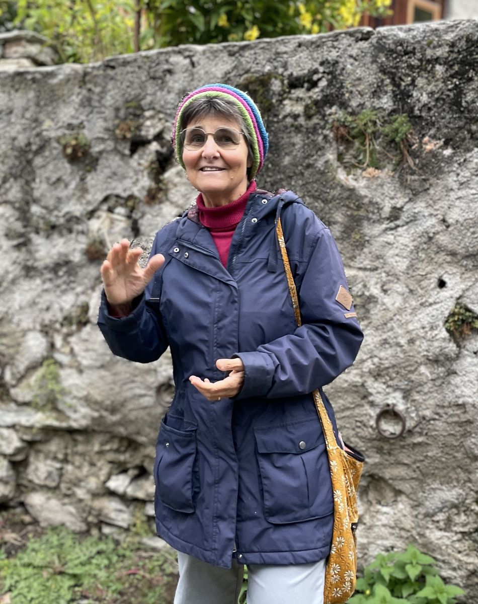 Sie wird von rund 25 Personen umringt, welche im Rahmen des Kastanienfestivals an einer Dorfführung in Soglio inklusive Degustation von Kastanienprodukten teilnehmen. Es nieselt leicht und es herrschen herbstlich-kühle Temperaturen. Dennoch lauschen die Anwesenden interessiert den Ausführungen der Bergellerin.