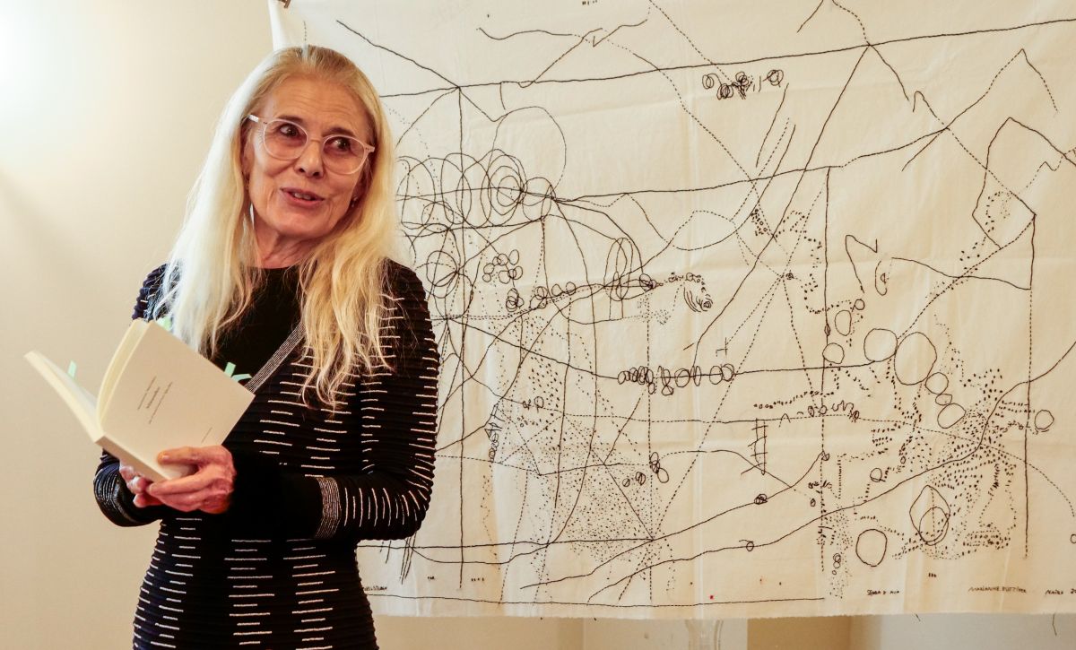 Die Künstlerin und Autorin Marianne Büttiker hat ihren Gedanken zu Wasser und Quellen in Nairs in eine gestickte Form gebracht.
