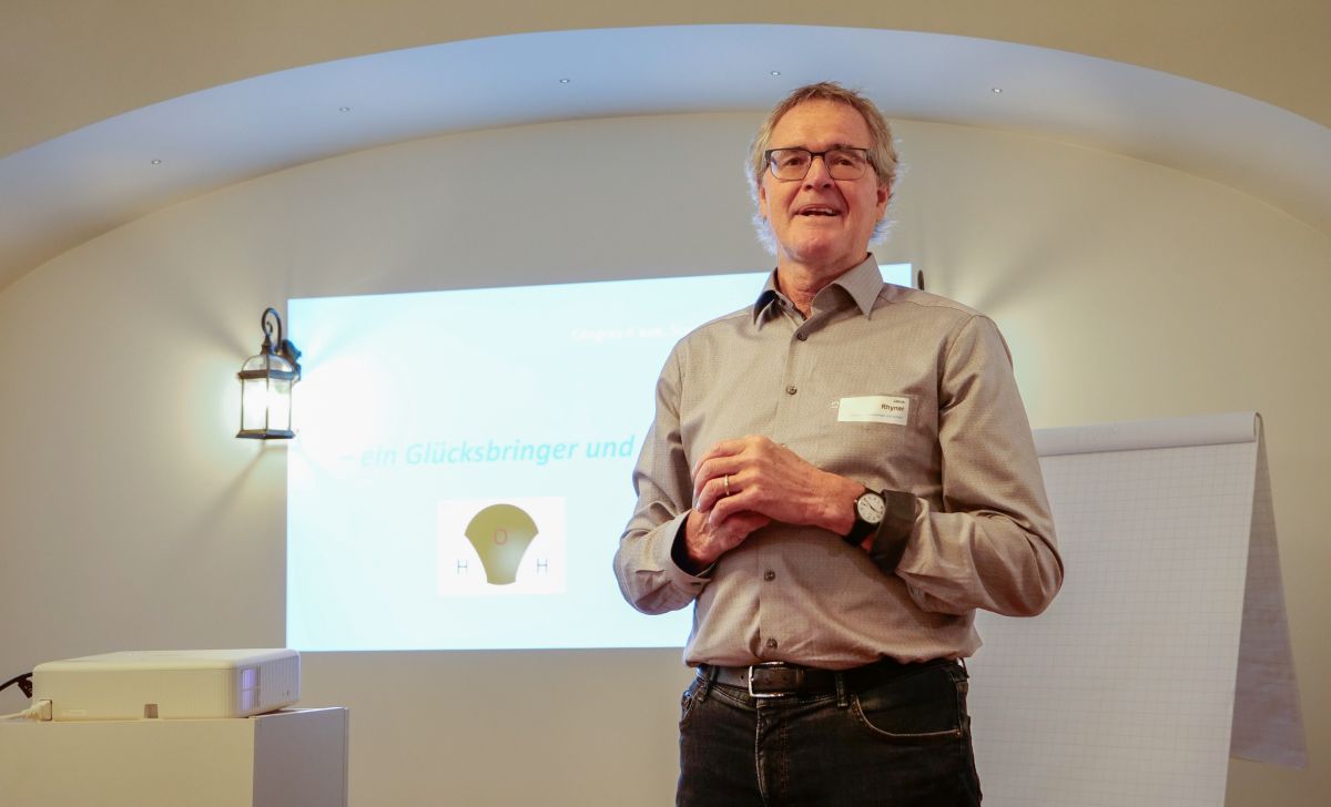 Rolf Backenecker, Ingenieur und Naturheilpraktiker, beim Erklären von wassergebundenen Zusammenhängen in der Medizin. Er verglich auch die kristalline Struktur von Leitungs- und Quellwasser.