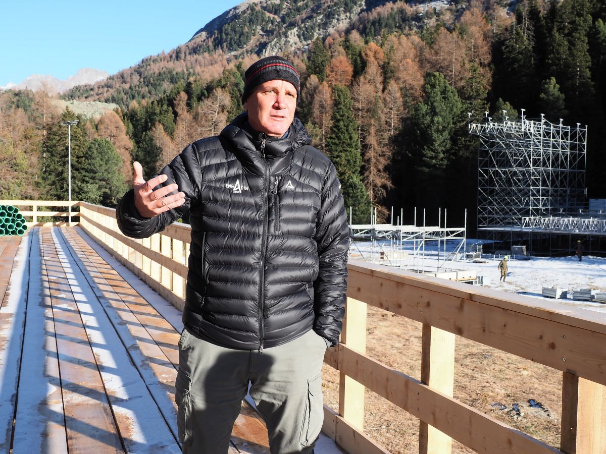 In diesen Tagen werden die grossen Bauten erstellt: die Podeste, die Eventbühne, der Regieturm, die Plattformen für die Zuschauerinnen und Zuschauer, für die Kommentatoren der Fernsehstationen und für die Medienvertreter. Das sind die sichtbaren Infrastrukturen, die erstellt werden, bevor die grosse Schneegeschichte passiert.