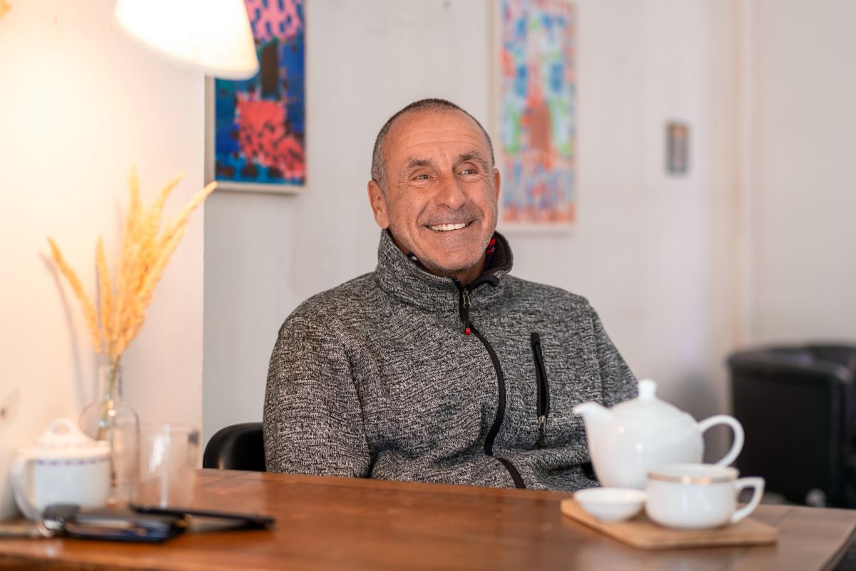 Im Kunst Café in Samedan erzählt Fritz Schmid, warum er nicht als Trainer beim FC Celerina infrage kommt. Fotos: Mayk Wendt