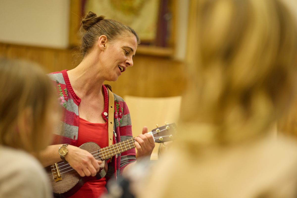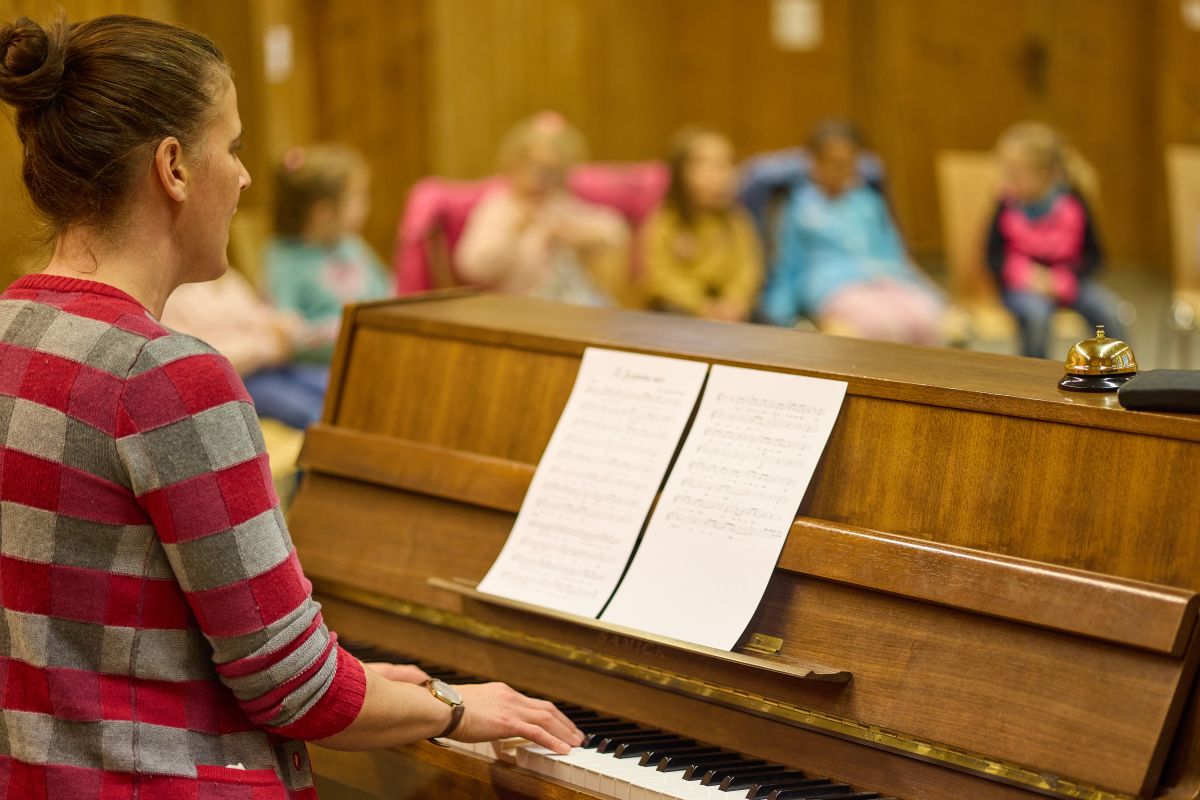 Nina Mayer fa cullas mattas dal coro «minis» las prouvas pel concert (fotografia: Michael Steiner).