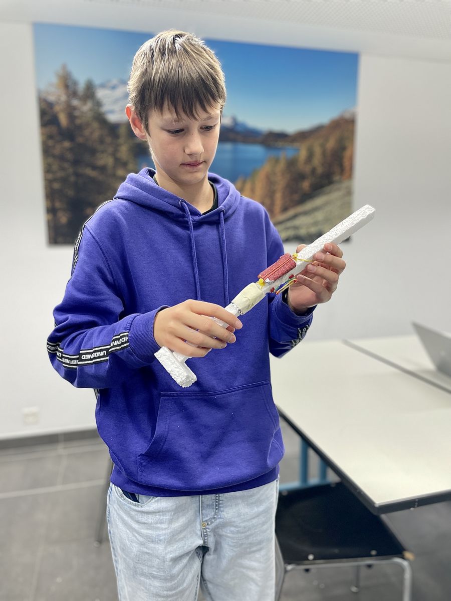 Diego hat ein Kniemodell gebastelt. Foto: Fadrina Hofmann