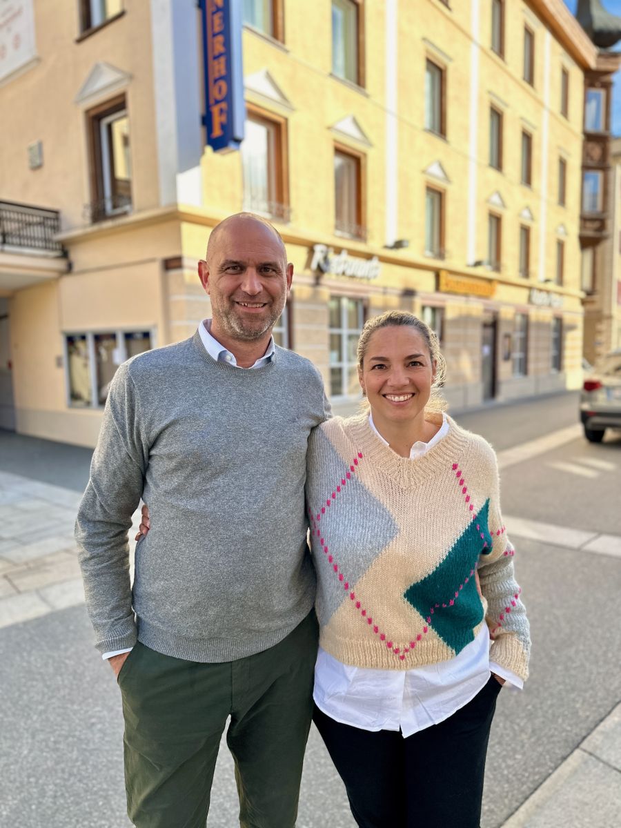Die neuen Gastgeber des Hotels Engadinerhof in Pontresina: Pascal Esche und Nina Lang-Esche. Foto: z.Vfg