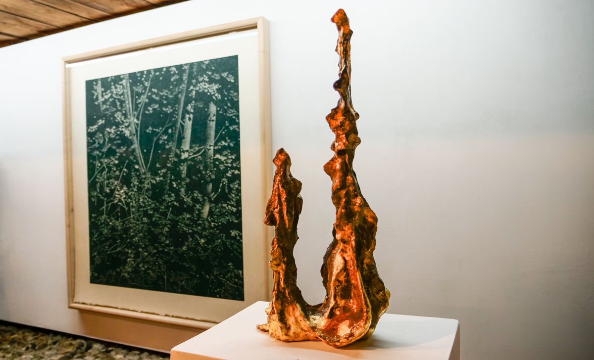 Bild "Sommer II" 2019 von Franz Gertsch und unbetitelte Skulptur von Sara Masüger 2024.