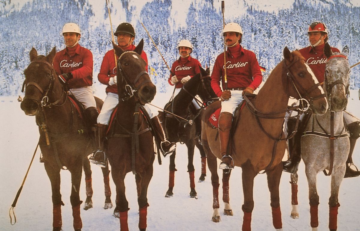 Die Spieler des ersten Snow Polo World Cup im Jahr 1985. Foto: z. Vfg