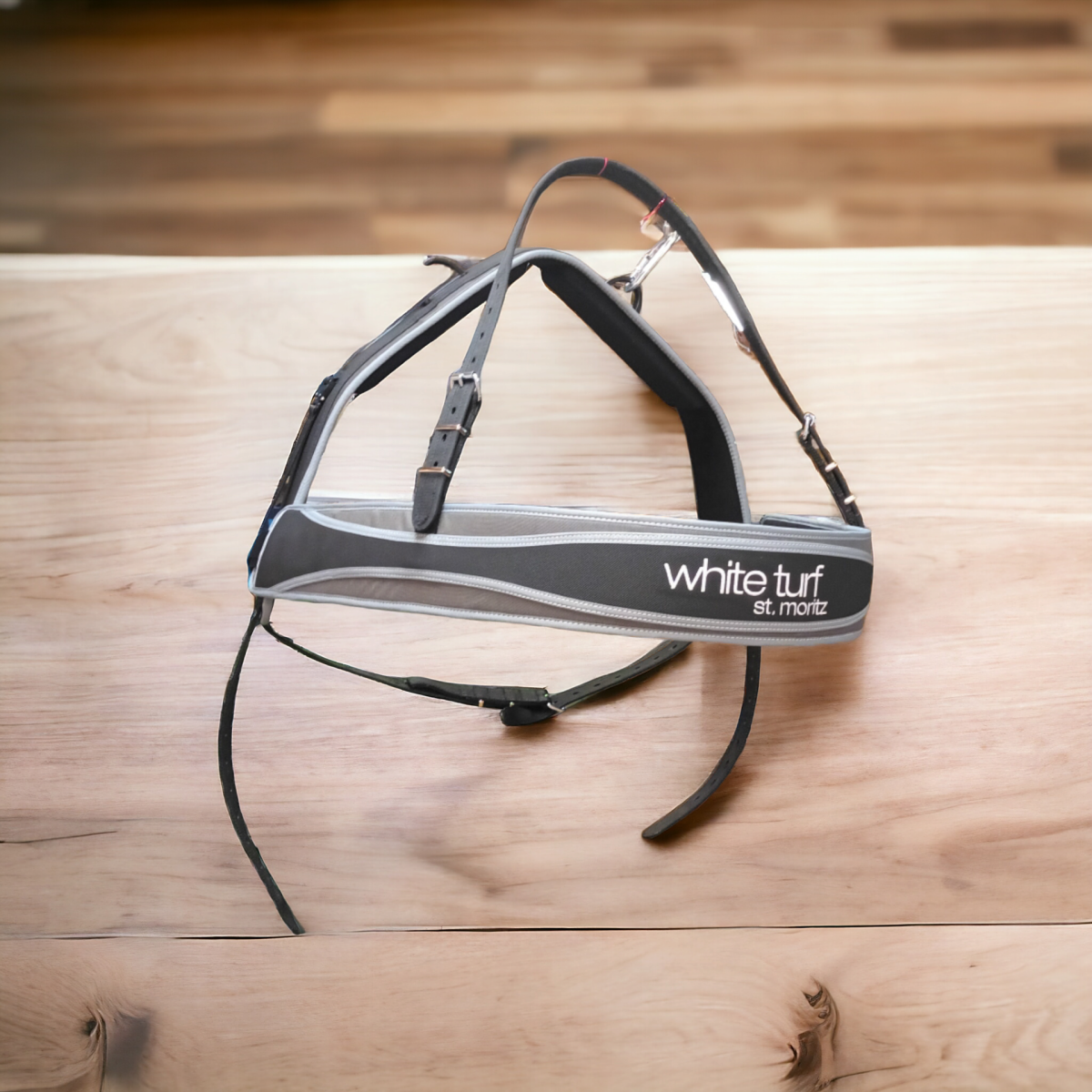 Das Sicherheitsgeschirr im Skikjöring ist die grosse Neuerung am diesjährigen White Turf. Gefährliche Situationen durch führerlose Pferde sollten damit der Vergangenheit angehören.