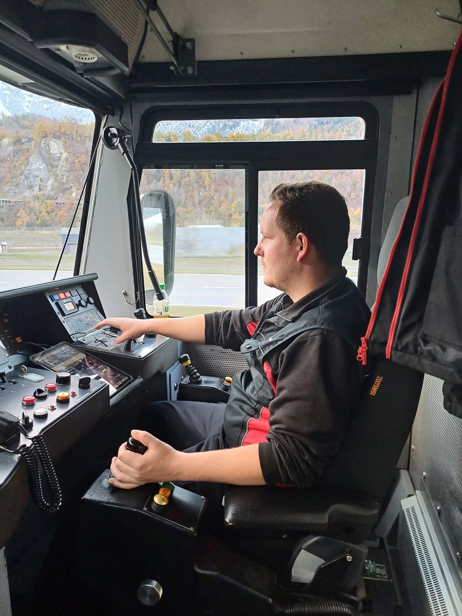 Lukas Blatter, il locomotivist da la BLS chi lavura daspö bundant desch mais per la Viafier retica (fotografia: mad).
